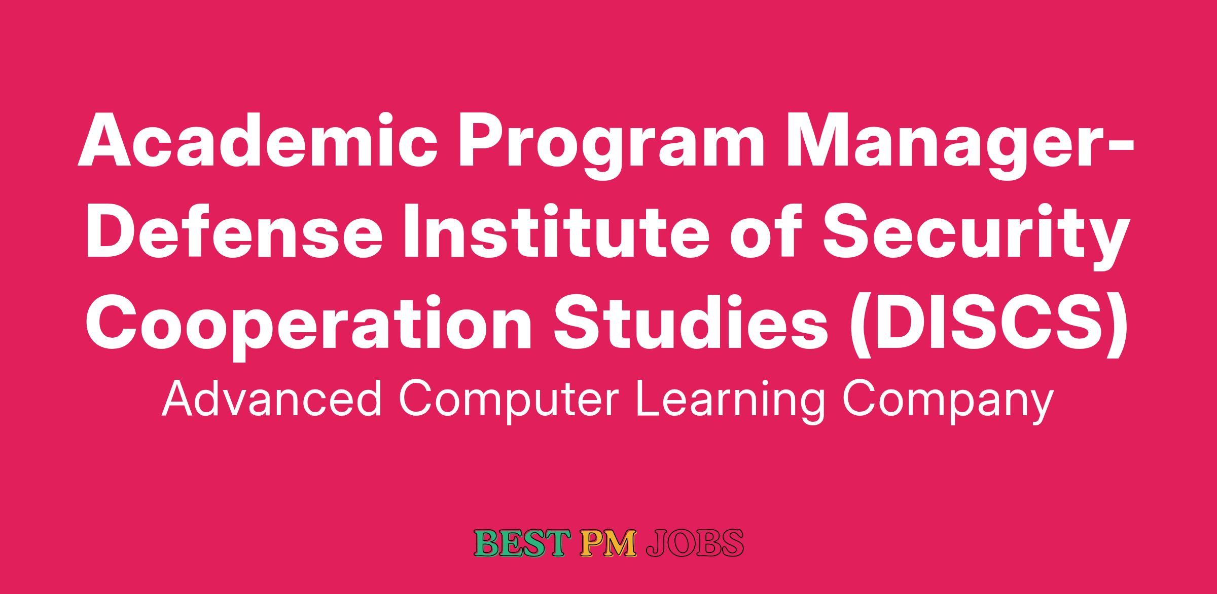 The DISCS Academic Program Manager leads a team of eLearning Developers, Instructional Designers, Visual Designers and Learning Management System Administrators to provide learning design and development services for DISCS courseware. The PM will work closely with DISCS faculty to design and develop interactive courseware, graphical elements, scenarios, knowledge checks, and interactions for members of the DoD Security Cooperation Workforce to support new requirements.