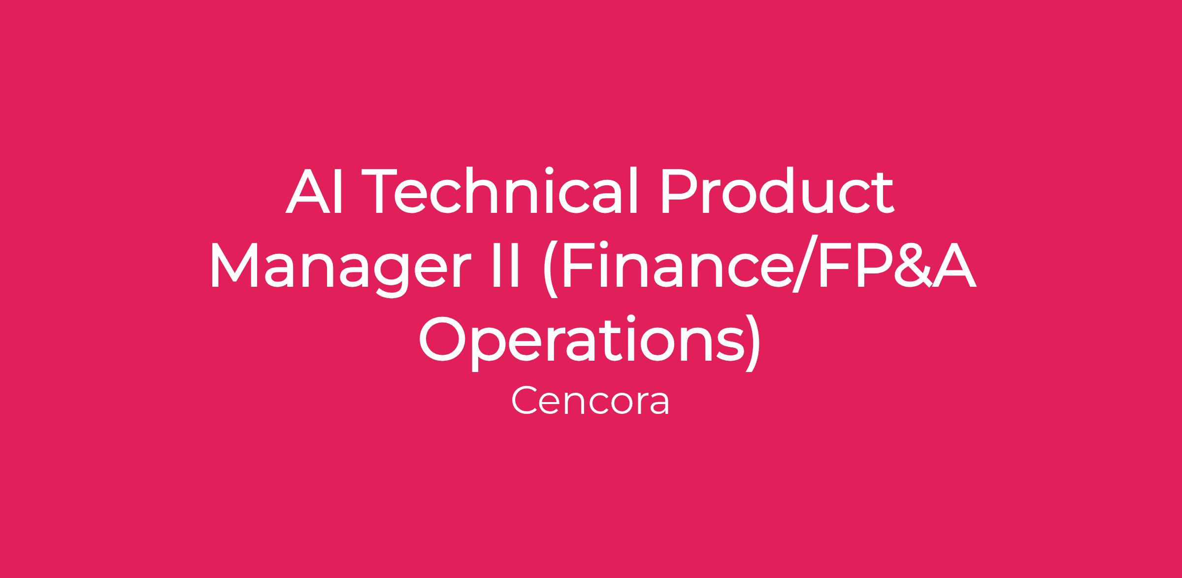 As a Technical Product Manager specializing in AI Solutions, this role will be critical in driving the development of generative AI products and solutions within Cencora's finance and risk management operations.Β This role requires a seasoned product management professional with comprehensive domain expertise in FP&A, procurement, audit, compliance, and risk management who can independently own and drive data insights-focused AI initiatives across our finance portfolio.Β They will collaborate with cross-functional teams to define product vision, prioritize features, and deliver innovative AI-enabled tools that meet business needs.