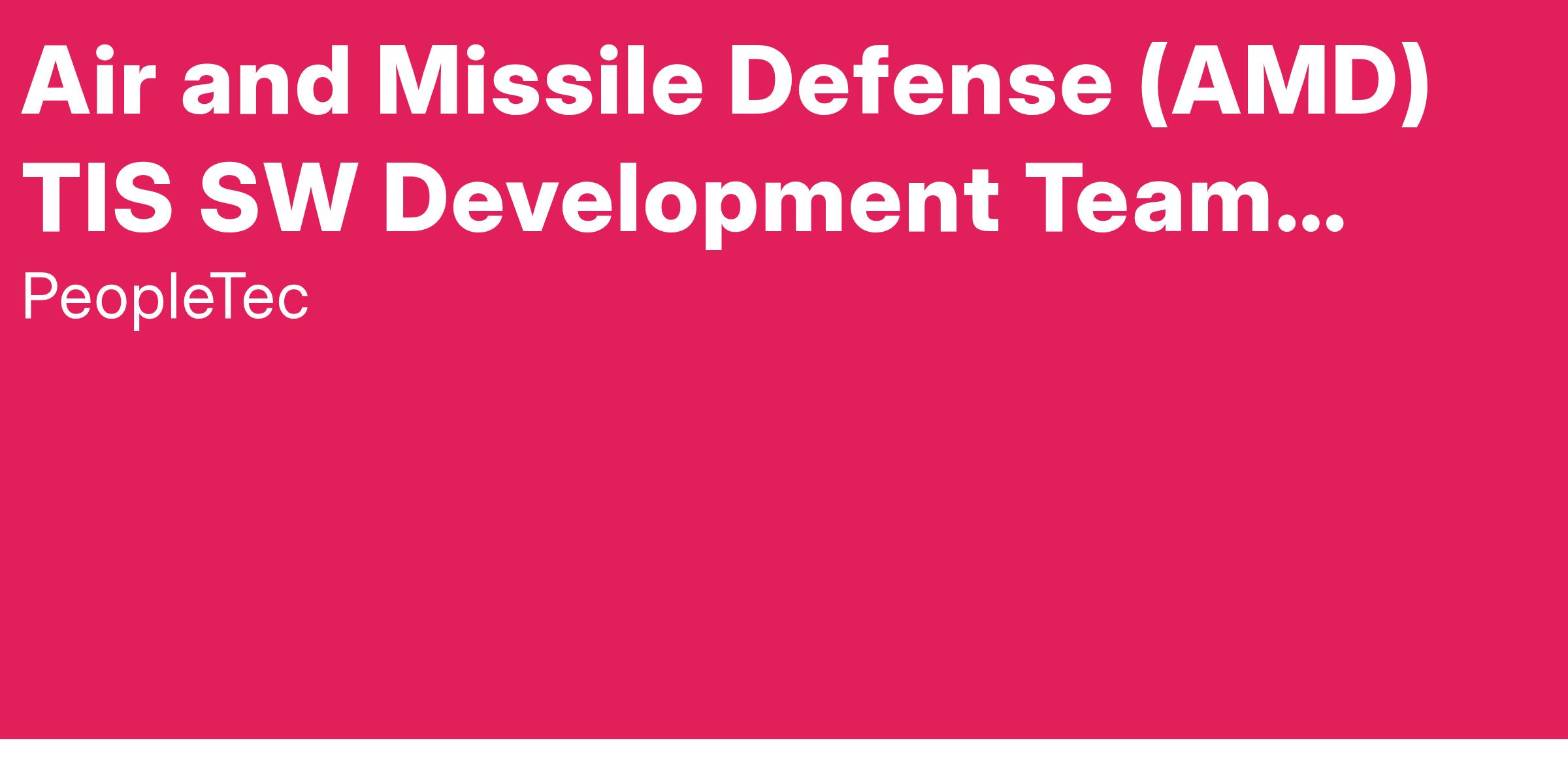 PeopleTec is currently seeking a Air and Missile Defense (AMD) TIS SW Development Team Product Owner (PO)Β to support our Huntsville, AL location.