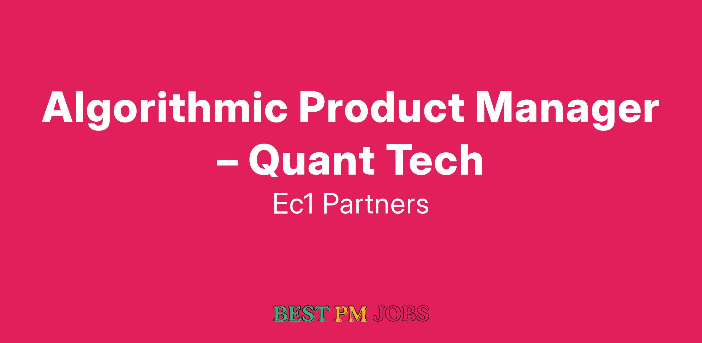 EC1 Partners has won an exclusive mandate to support a next-generation FinTech firm building modular tools for systematic trading desks. Headquartered in New York and backed by top-tier investors, the firm is scaling its platform to support everything from signal research to execution. They are hiring an Algorithmic Product Manager to help define and lead the roadmap for core quant trading features.