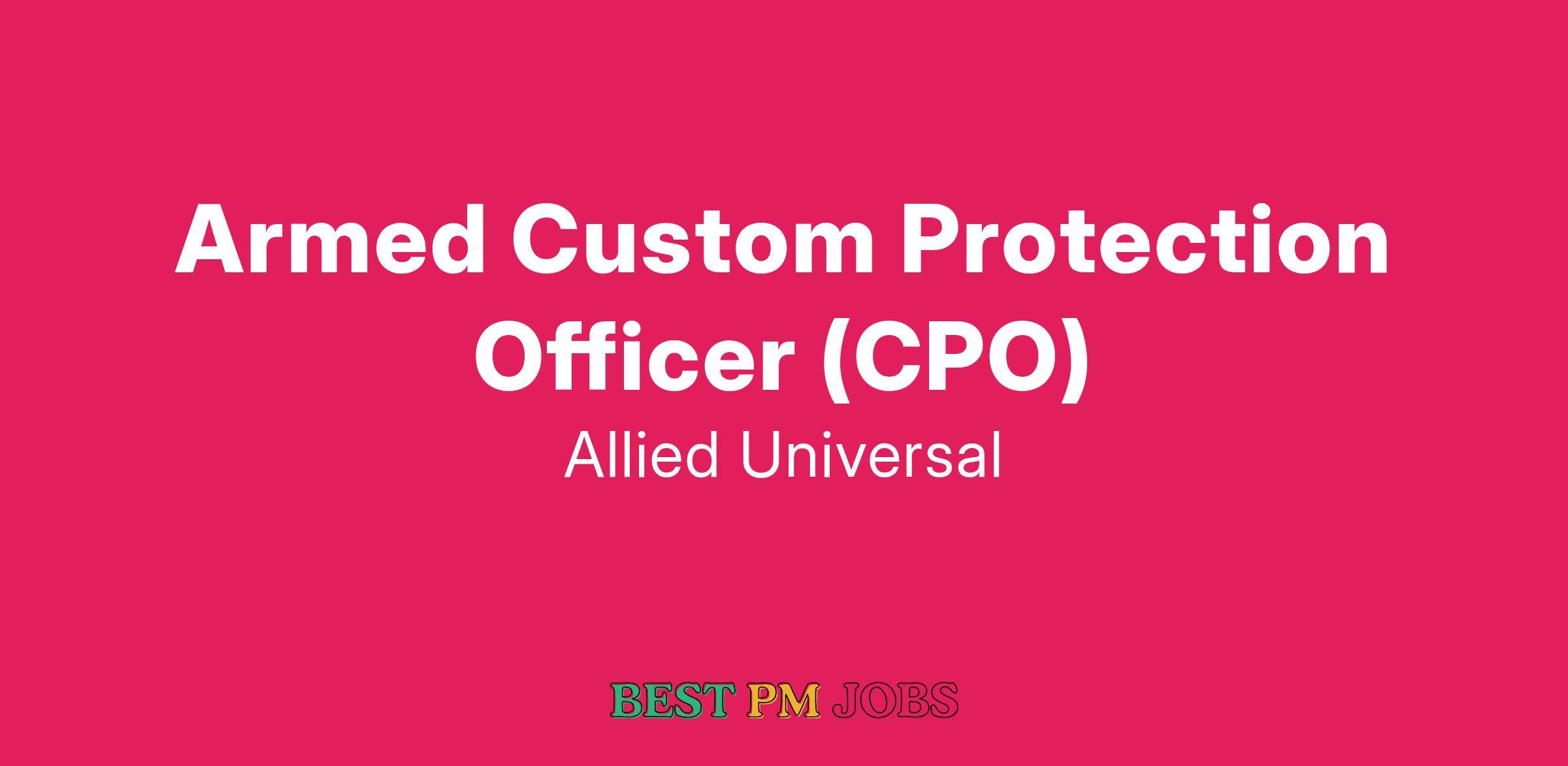 Allied Universalยฎ is hiring a Armed Custom Protection Officer (CPO). The Armed Custom Protection Officer will conduct armed foot and/or vehicle patrol (interior and/or exterior). The Armed Custom Protection Officer will also control access and egress; monitor CCTV and alarm systems; compose reports; deter criminal activity and misconduct.