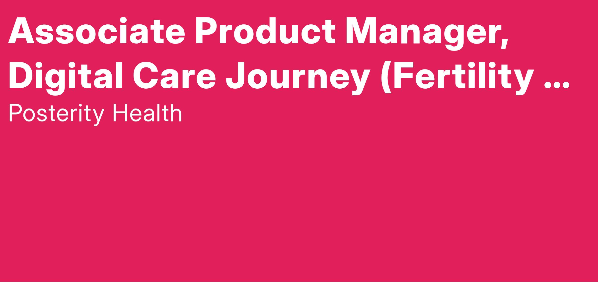 Job Title: Associate Product Manager, Digital Care Journey (Fertility & Low Testosterone)
