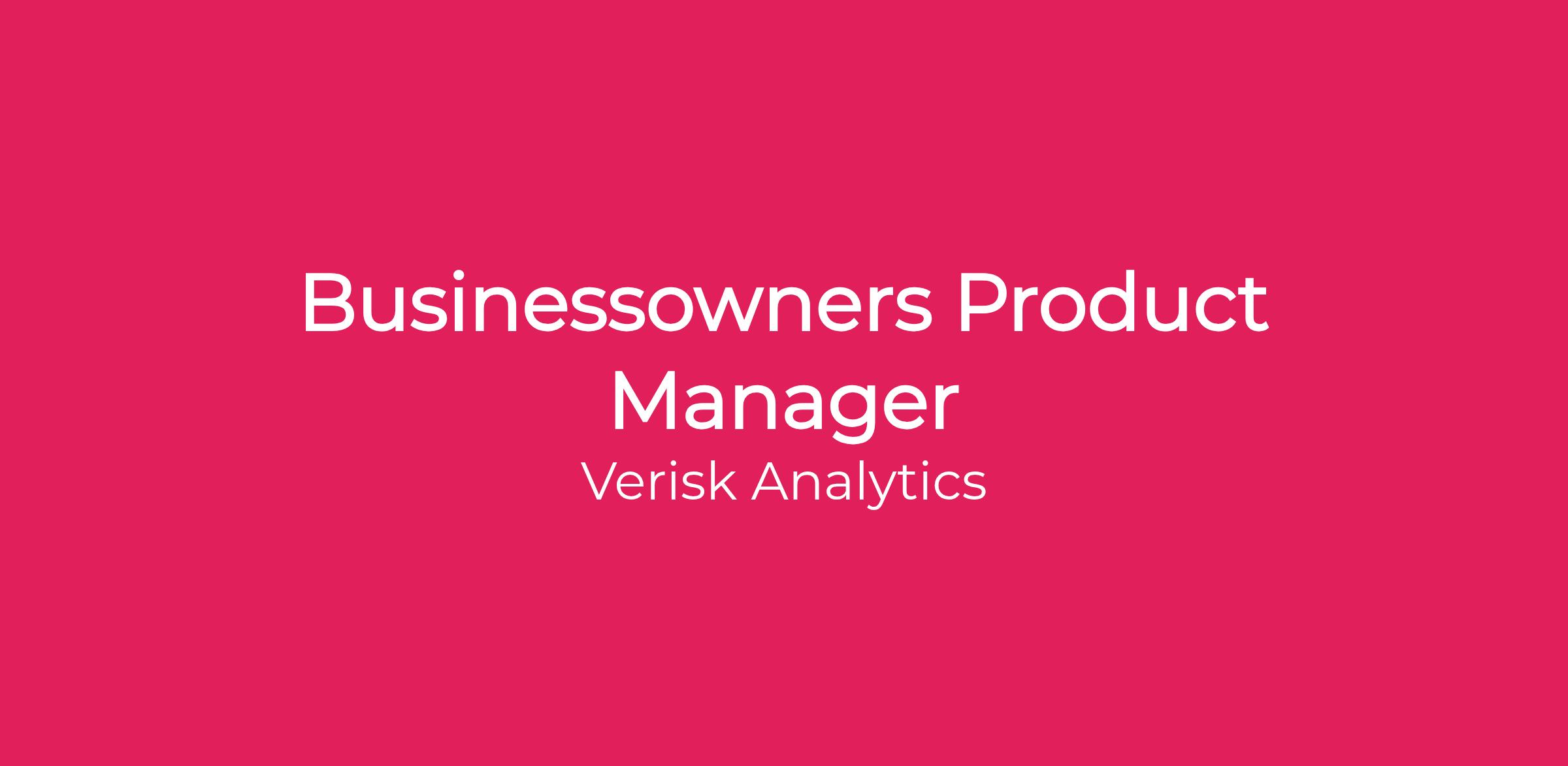 DescriptionVeriskβs ISO Businessowners and Farm team is looking for a highly motivated Product Manager. This individual will work cross-functionally to develop line of business strategy, monitor and take action on industry trends, develop customer relationships, and develop a holistic approach to defining and measuring success for the line.