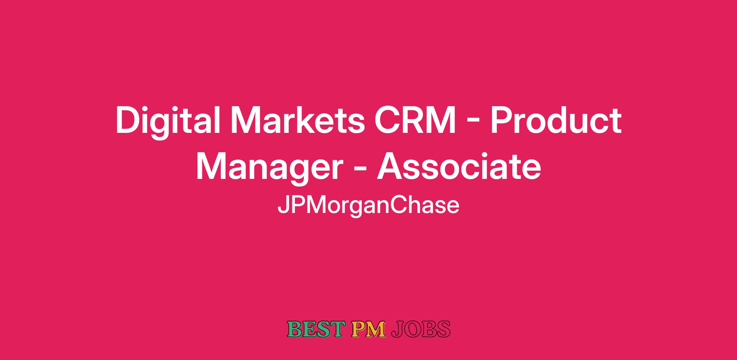 DescriptionJP Morgan is seeking a motivated Associate Product Manager to support the development of our CRM product within Digital Markets. In this role, you will work in a dynamic, collaborative environment that values diversity and inclusion, helping to shape the future of CRM platforms for our Markets business.
