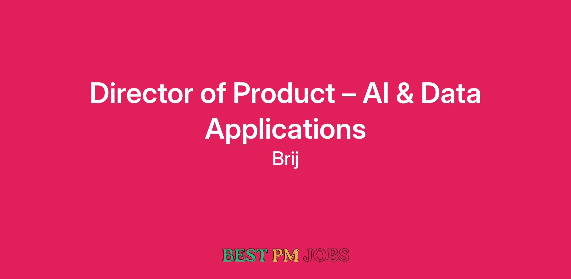 Weβre seeking a Director of Product β AI & Data Applications to own Brijβs product strategy and execution, with a particular focus on building AI-and data-powered experiences across our platform.