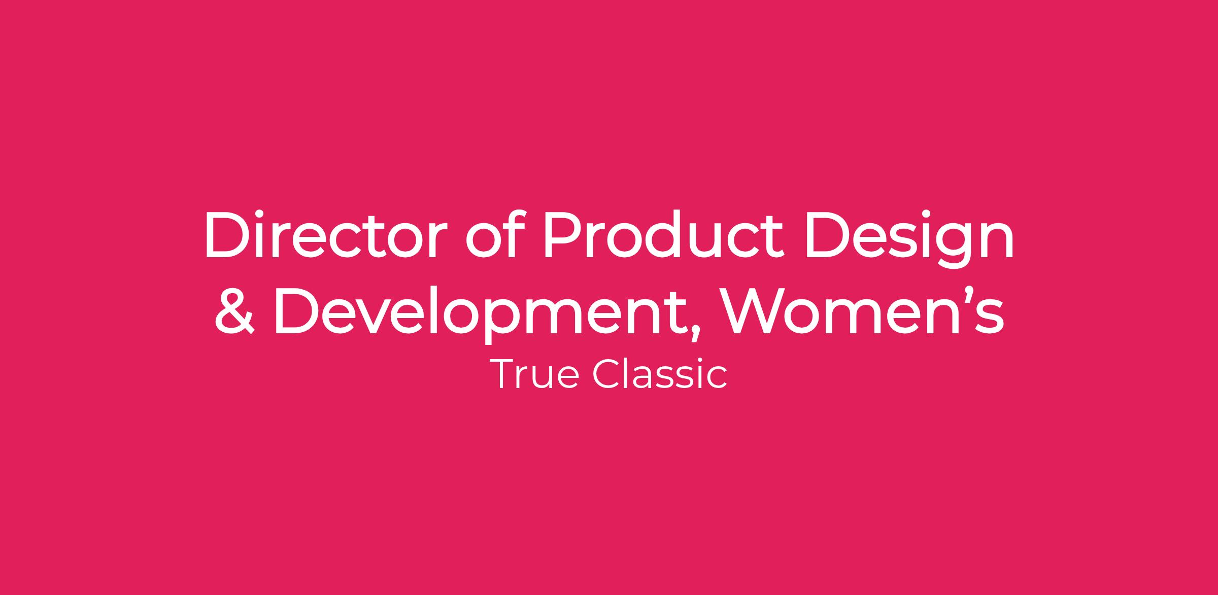 True Classic is hiring a Director of Product Design & Development, Womenβs to lead end-to-end product creation for our Womenβs category, developing and translating category strategy into winning products delivered with speed, consistency, and scale. This role is the strategic and executional anchor for womenβs product β accountable for the product roadmap, design excellence, development rigor, and SKU lifecycle performance from concept through launch.