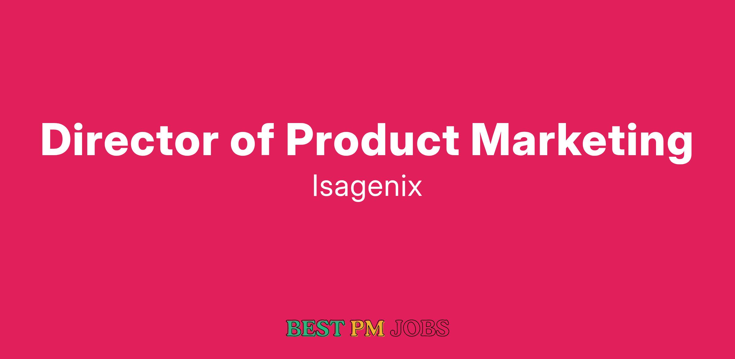 The Director of Product Marketing leads the Global Product Innovation, Management, Product Education and Product Campaign functions at Isagenix.Β The role is responsible for the overall global product portfolio including strategic direction of new products from ideation and new product concepts to phase-out planning and collaboration for all markets. The role leads a team with a goal of driving sales and growth through effective portfolio management and by driving innovation into concepts that complement existing product categories as well as leverage opportunities to move into new categories and create campaigns as dictated by our overall company vision. The Director of Product Marketing also oversees the Product Education, helping to drive the overall product education strategy and deliver programs, tools and systems that empower our customers to learn about our products and share them with confidence.