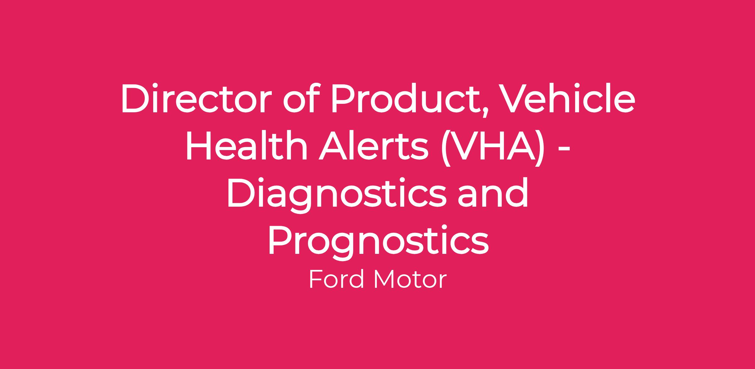 The Director of Product, Vehicle Health Alerts (VHA) β Diagnostics & Prognostics, is responsible for leading the Vehicle Health product team focused on delivering predictive and diagnostic insights to Ford and Lincoln customers (both commercial and retail) and dealers.