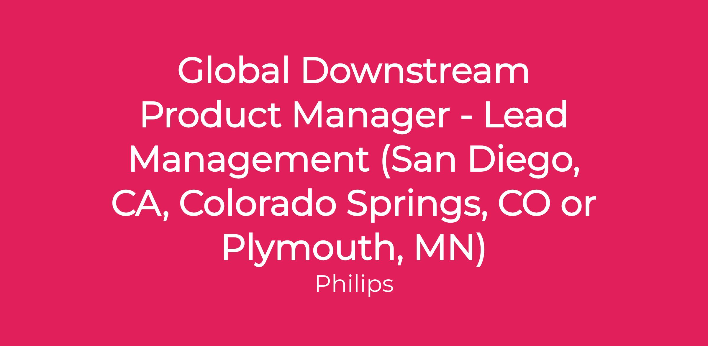 Global Downstream Product Manager - Lead Management (San Diego, CA, Colorado Springs, CO or Plymouth, MN)
