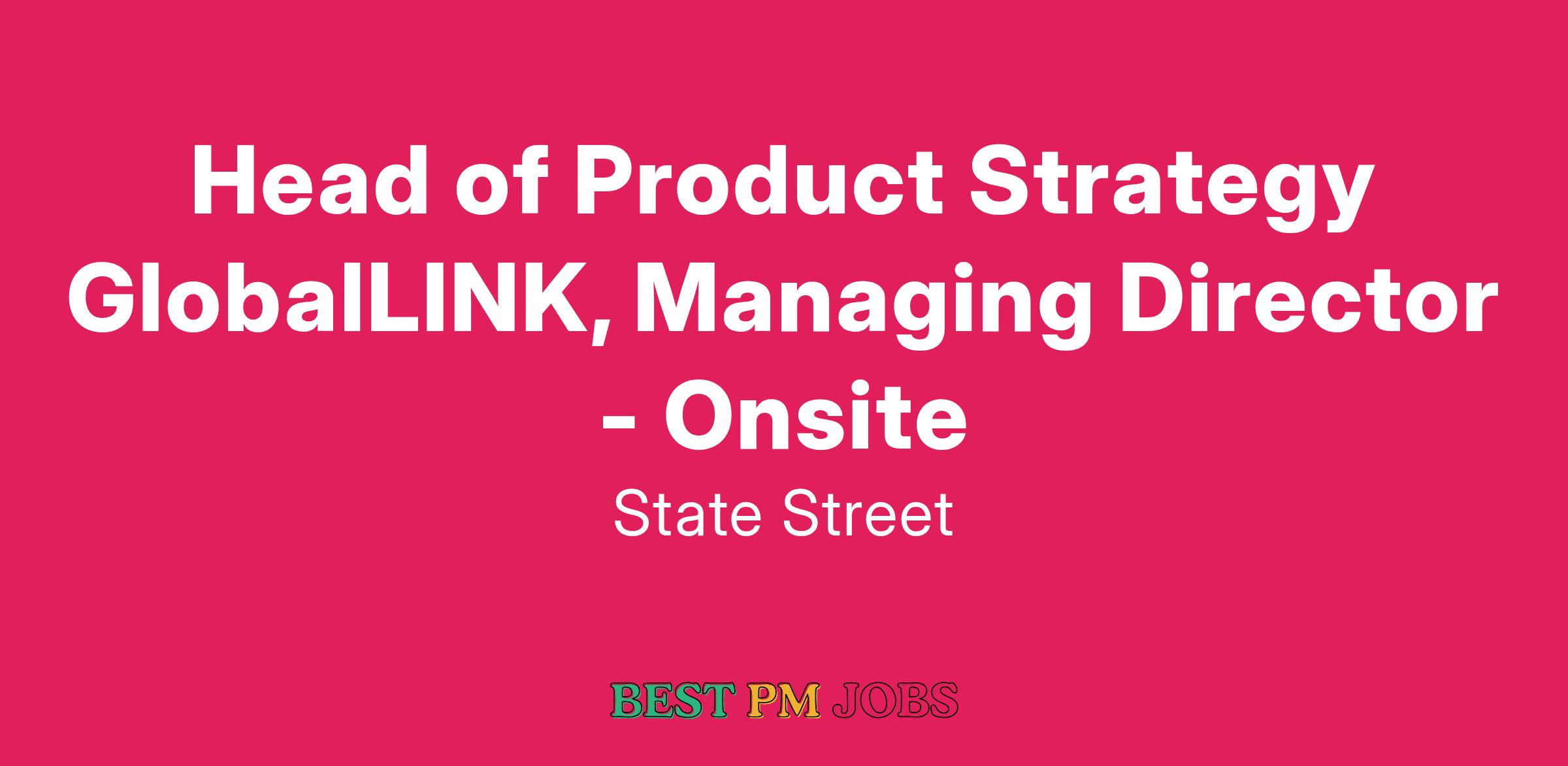 The Head of Product Strategy, GlobalLINK, Managing Director will be responsible for working with the business heads to define the global strategy, vision and development priorities for GlobalLINK across FX Connect, Currenex, Fund Connect, TradeNexus, Clear Connect and shared GlobalLINK services. Β Β Additional responsibilities will include ownership of the product roadmap for shared services and execution and implementation of the product vision.