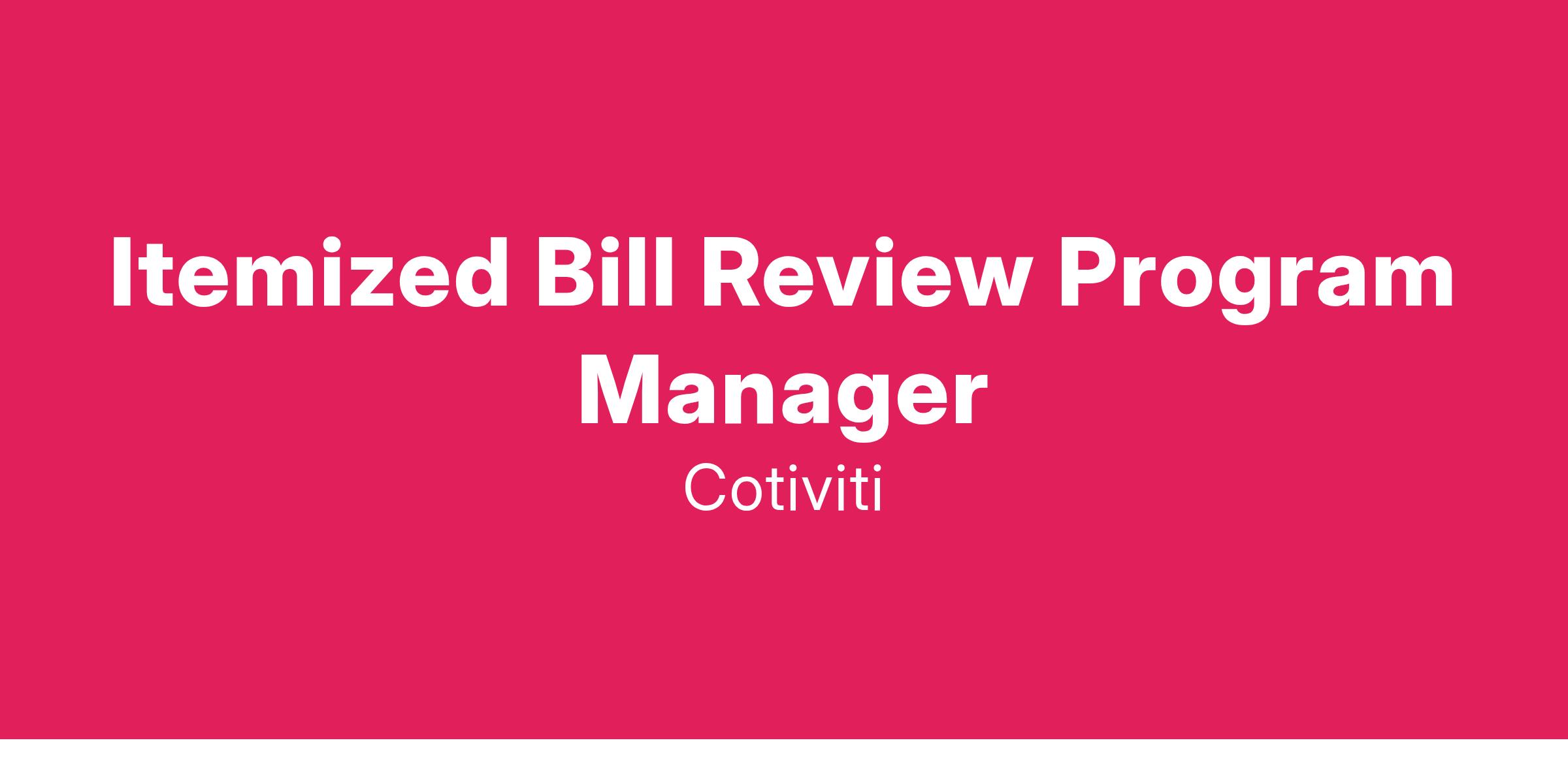 The Itemized Bill Review (IBR) Program Manager oversees and leads IBR business operations including claim workflow, vendor performance management, inventory management, and timely and accurate completion of client deliverables. This role entails implementing strategy, tracking milestones and performance, communicating progress, removing obstacles, gaining alignment, escalating issues as needed, and delivering results on time. In addition, this role is responsible for adhering to contractual commitments and delivering customer satisfaction consistent with Cotiviti and client policies and procedures.