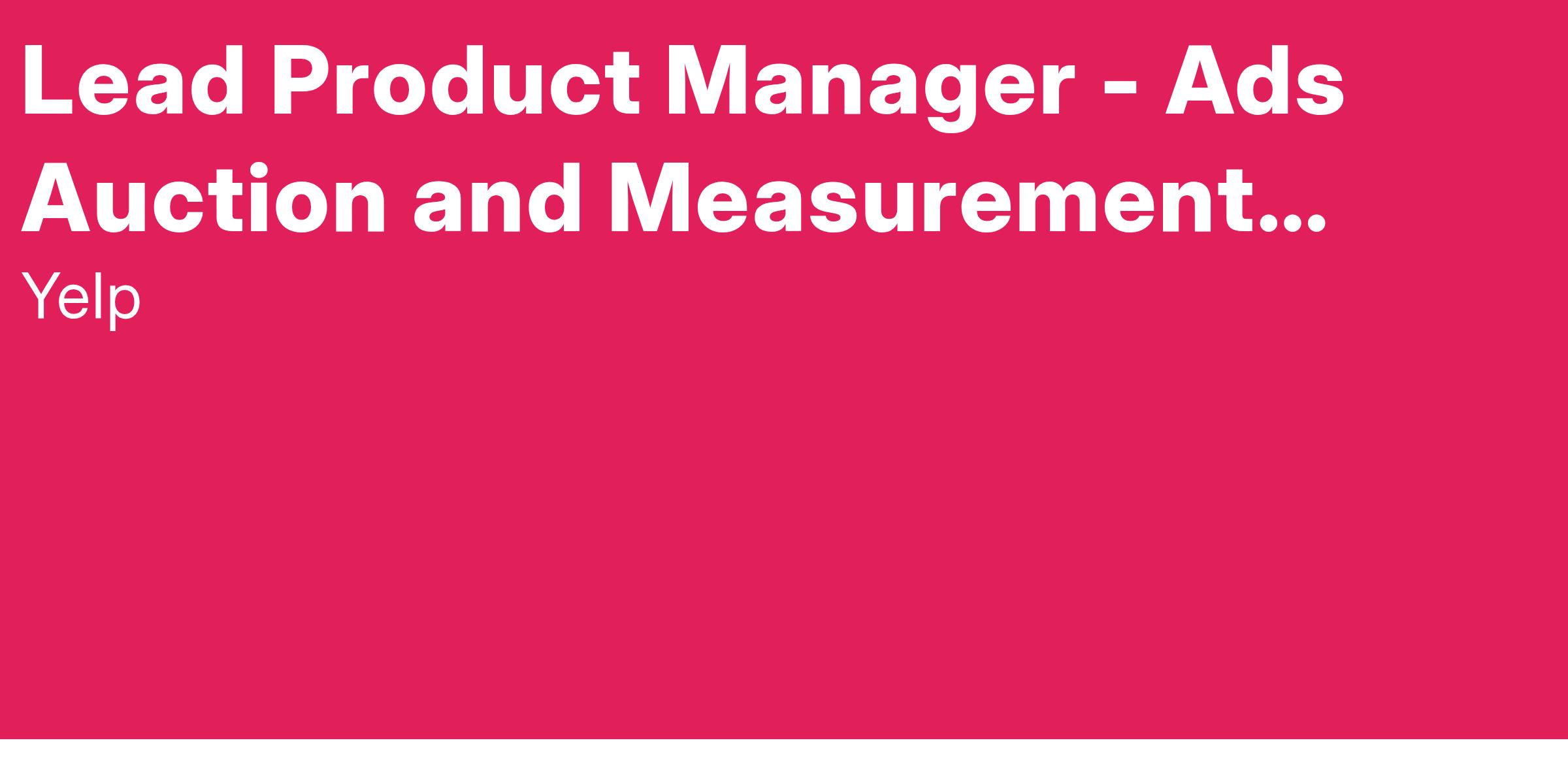 As the Lead Product Manager for Ads Auction and Measurement, you will own the product strategy and execution for Yelp's core ad auction, bidding, pricing, budget pacing mechanisms, and corresponding measurements. This is a highly technical leadership role where you will guide the evolution of algorithms and systems that make real-time decisions maximizing value across multiple stakeholders. You will define how we measure the performance and impact of these complex systems, focusing on both short-term efficiency and long-term impact. You will partner closely with world-class engineering and applied science teams to design, experiment, implement, and iterate on auction dynamics and the metrics that guide our progress.
