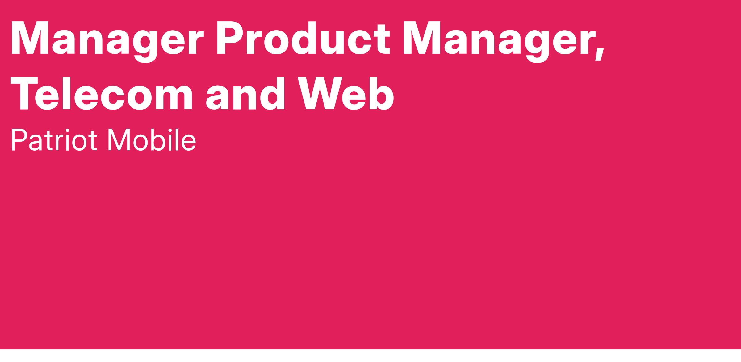 The Manager Product Manager will report to the Vice President of Product Development and Fulfillment. The successful candidate will be responsible for overseeing a suite of telecom products, some of which are digital. The digital products include the launch of a mobile application and key website functionality including account management. For all products, including telecom and digital, the PM will be responsible for the full lifecycle management of products they own. In this role, the successful candidate will be responsible for product lifecycle, from ideation and strategy to execution and optimization. They will work closely with cross-functional teams, including engineering, design, marketing, and customer support, to deliver seamless and innovative digital experiences that meet our users' needs and drive business growth. As a Manager in the Product team, the successful candidate must be able to lead and mentor others in Product Management best practice and should be an example for others in how to conduct both Product Management and good business in general.