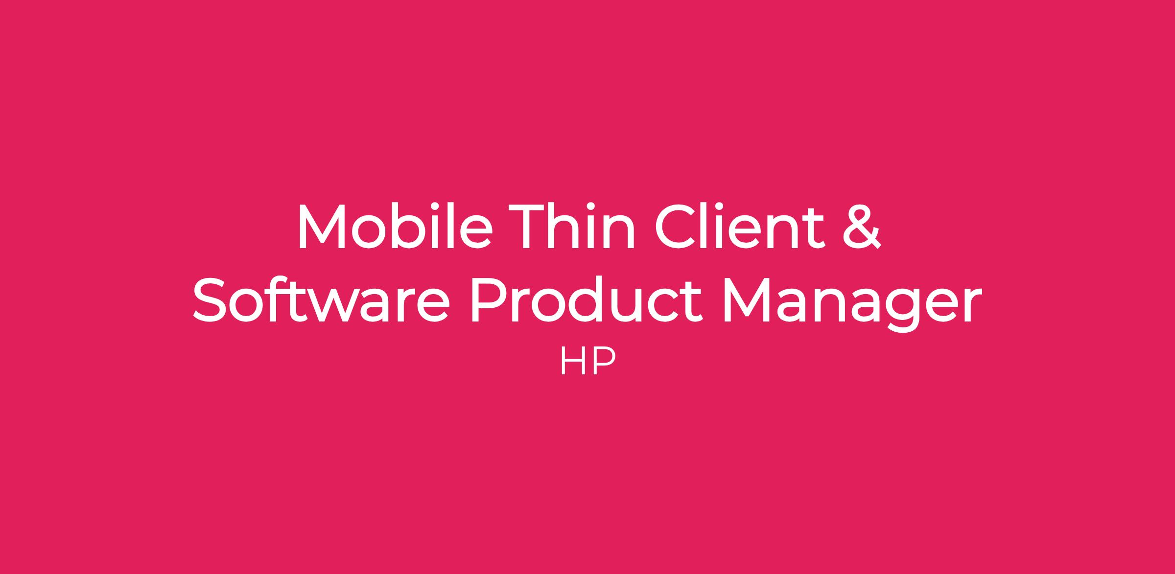 The Mobile Thin Client & Software Product Managerβs primary responsibility is defining the experiences, portfolio, and requirements needed to meet HP's goals for Mobile Thin Client platforms and Cloud Computing solutions. The Mobile Thin Client & Software Product Manager applies advanced subject matter knowledge to solve complex business issues and is regarded as the Mobile Thin Client subject matter expert with strong experience in software.Β The position requires a detailed understanding of Thin Client customer needs and workflows as well as the overarching software and ecosystem experiences. Key driver for the development of forward-looking ideas for Mobile Thin Client devices that best integrate into HPβs solutions and ecosystem framework.Β