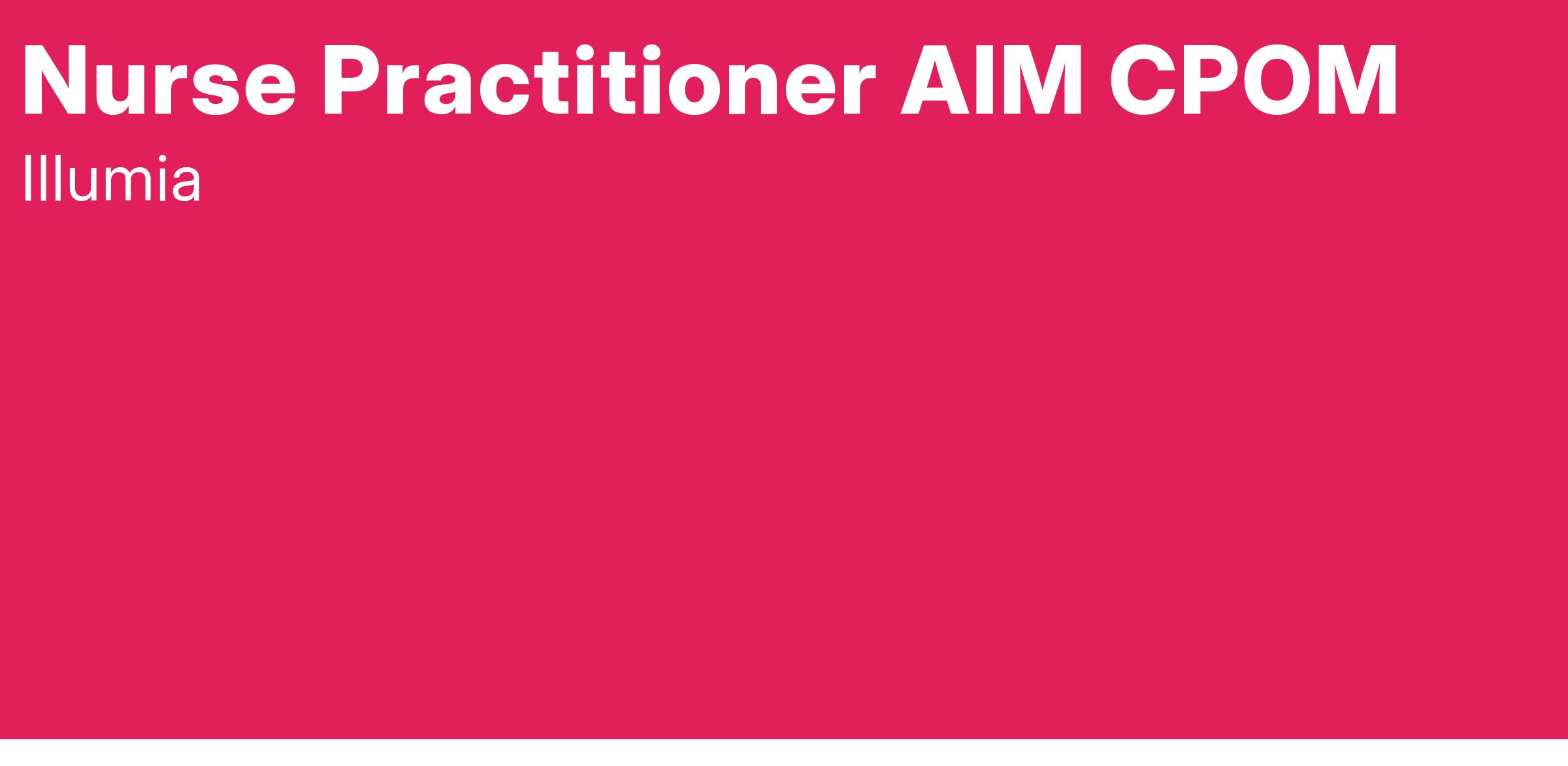 The Nurse Practitioner β Advanced Illness Management AIM) CPOM facilitates advanced illness management and palliative care for our patients, ensuring a comprehensive, individualized treatment plan, while demonstrating excellent clinical skills and ethical, relevant judgment. Provides diagnosis, treatment, consultation, and follow-up under the direction of the Professional Services Corporation Physician.