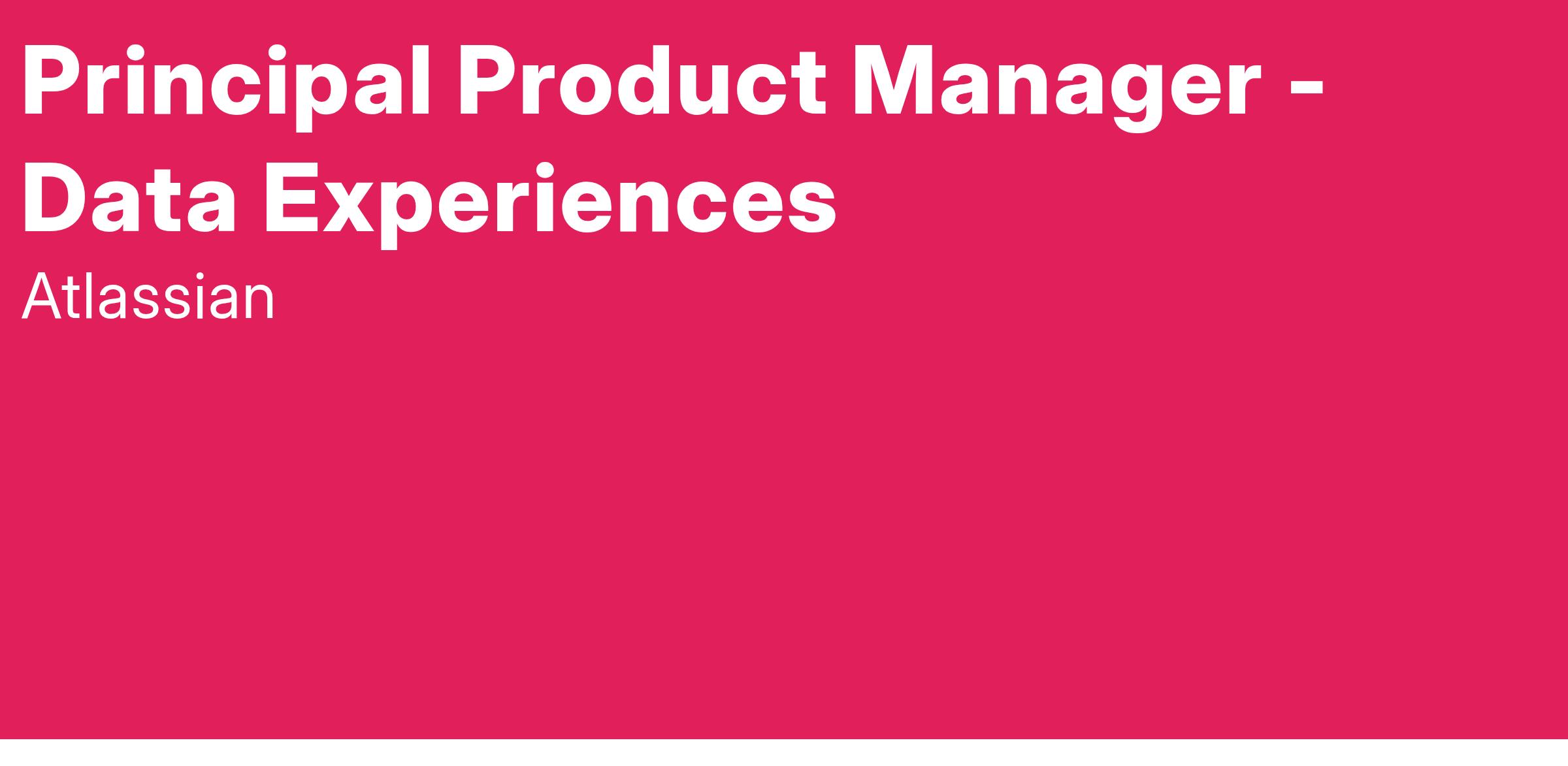 Weβre hiring a Principal Product Manager for Data Experiences. Weβre looking for a very experienced Product Manager with strong technical in building SaaS for businesses. The role will be a product owner for our flag ship data product Atlassian Analytics which has built a strong following from our largest customers.