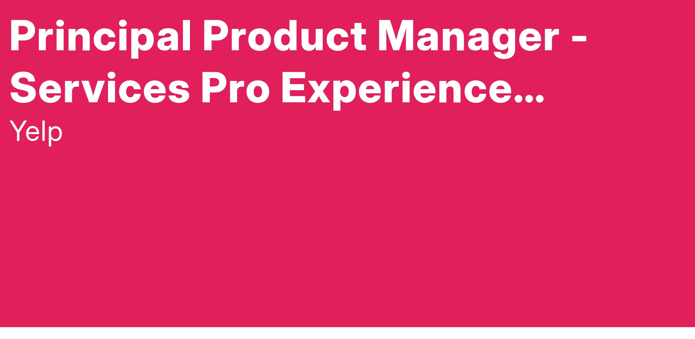 We are seeking a seasoned product leader to define and drive a strategy to make Yelp a world-class platform for small and large services businesses. This role will work across multiple groups within Yelp to deliver end-to-end product experiences on the service professional side of our marketplace. You will work closely with executive leadership to define company-level strategy, and will dive into the details to ensure coordinated roadmap execution across multiple product teams.