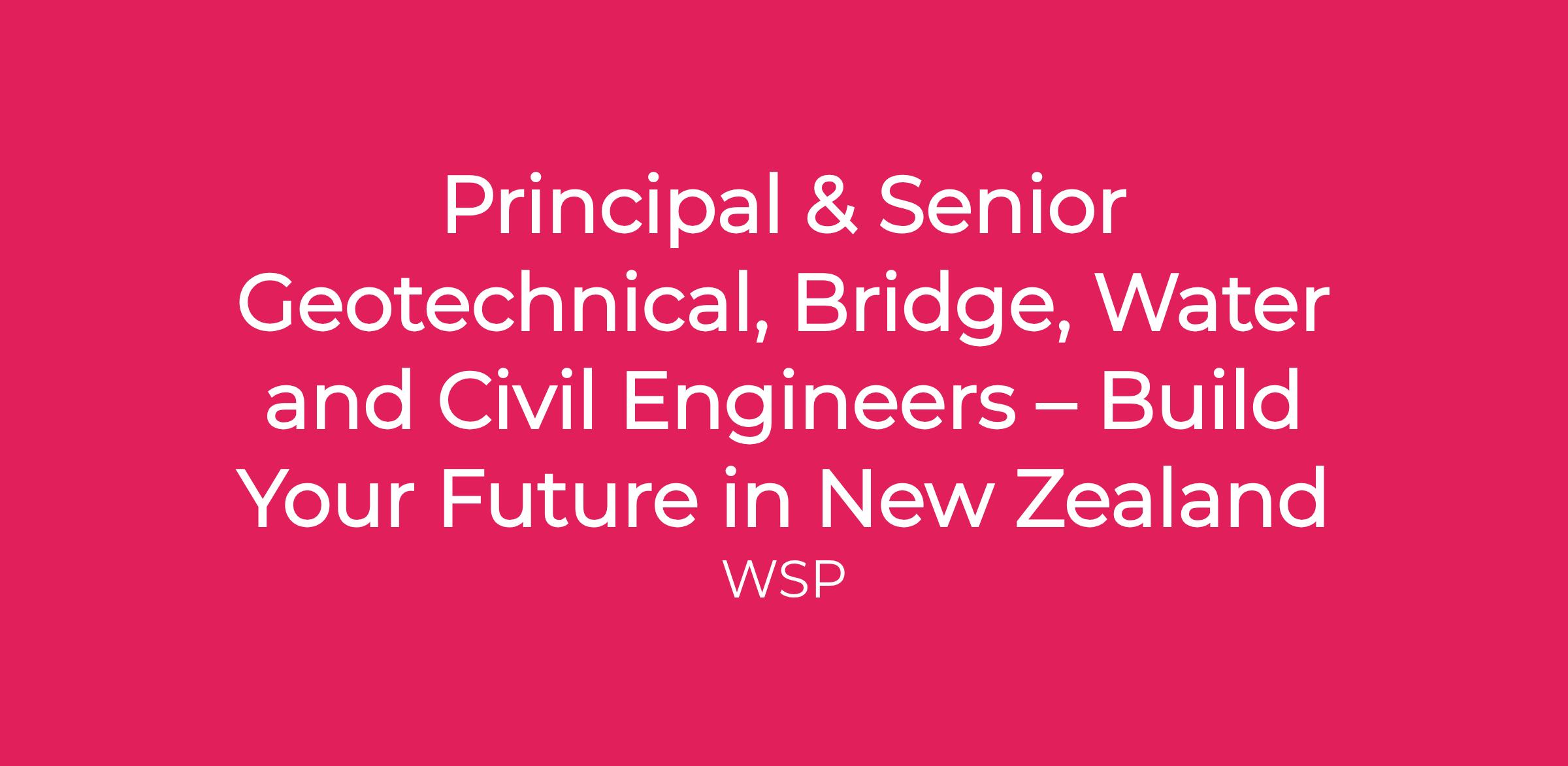 WSP New Zealand has exciting opportunities for senior to principal level engineering professionals to join our regional teams across Aotearoa. Working in one of our regional locations offers a unique opportunity to contribute to impactful, meaningful projects set against some of New Zealandโs most iconic landscapes.