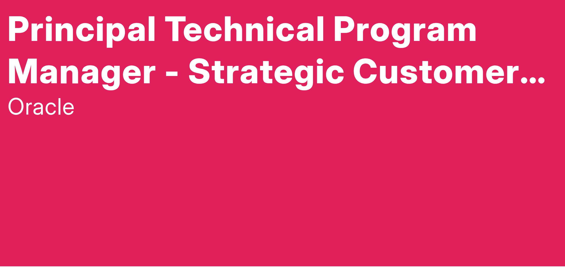 DescriptionWe have an opportunity for a Principal Technical Program ManagerΒ toΒ join the GPU Strategic Customers Engineering organization within the Oracle Cloud Infrastructure Group. This critical role will be responsible for working with cross functional teams across all of OCI. Β