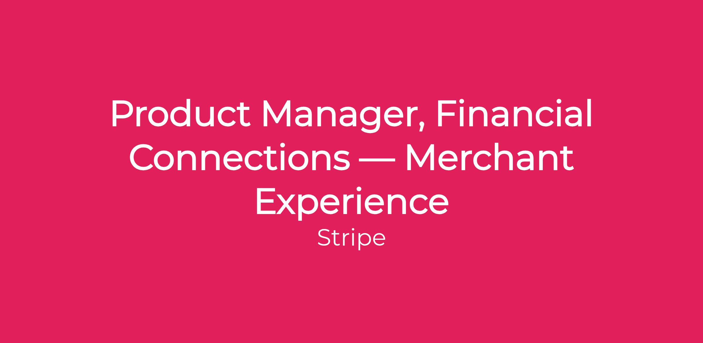 As the Product Manager for Merchant Experience within the Financial Connections team, you are the champion of our merchantsβ experience. Youβll shape the roadmap that enables merchants to link and verify bank accounts, manage risk, build innovative products, and go live quickly across Stripeβs surfaces. Youβll work cross-functionally with engineering, design, data science, compliance, legal, GTM, and partner product teams, and directly with users ranging from self-serve developers to global platforms.
