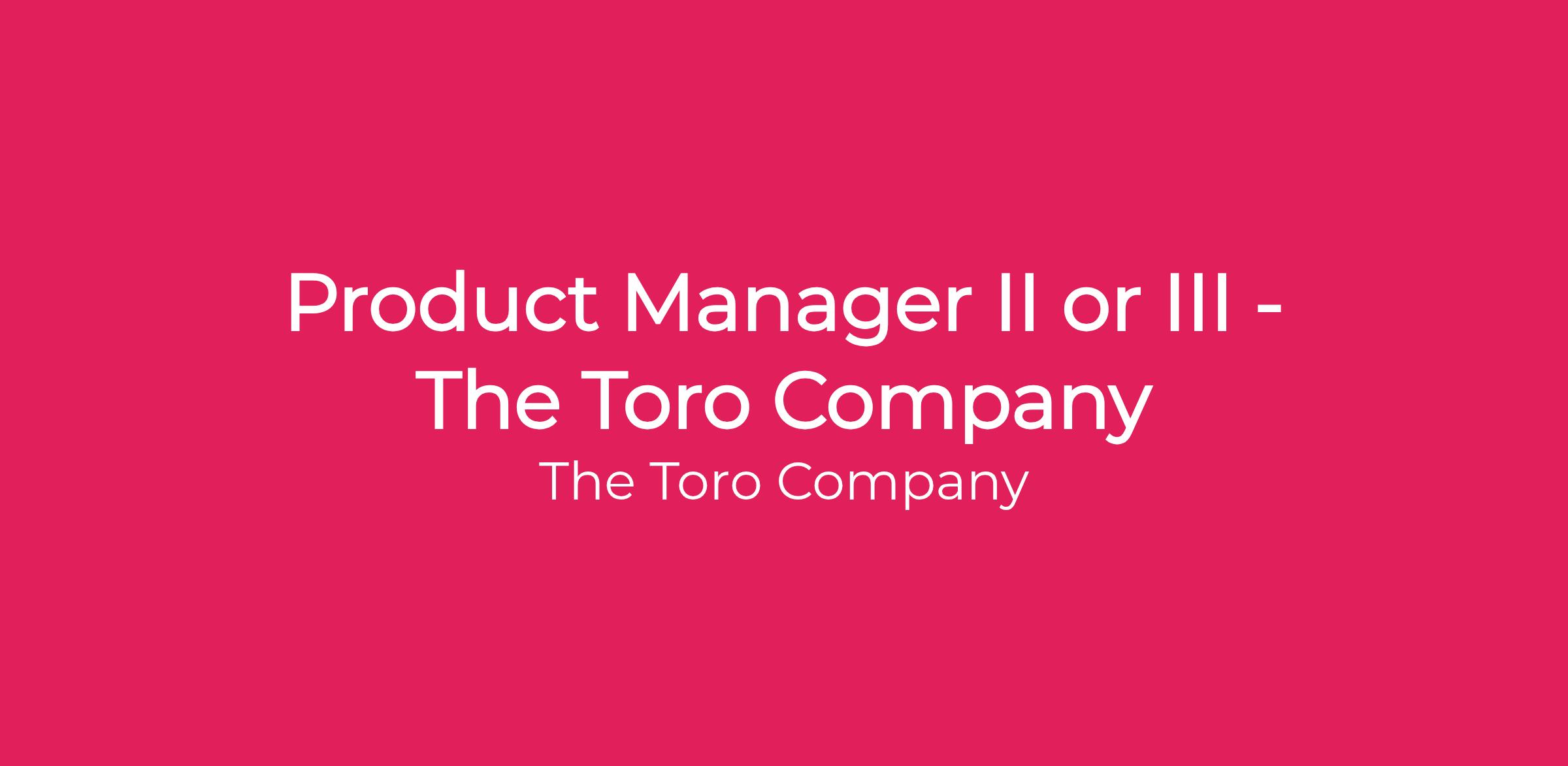 The Product Manager II or III drives product strategy and market positioning for products within the residential business, elevating brand impact and customer engagement across Exmark, Spartan, and Toro brands. Development of new residential equipment and improved products to meet customer requirements. Leads the product prioritization and product project write-up process including return on investment financial analysis. Assists in overall business financials to ensure growth objectives are accomplished and operational improvement goals are achieved