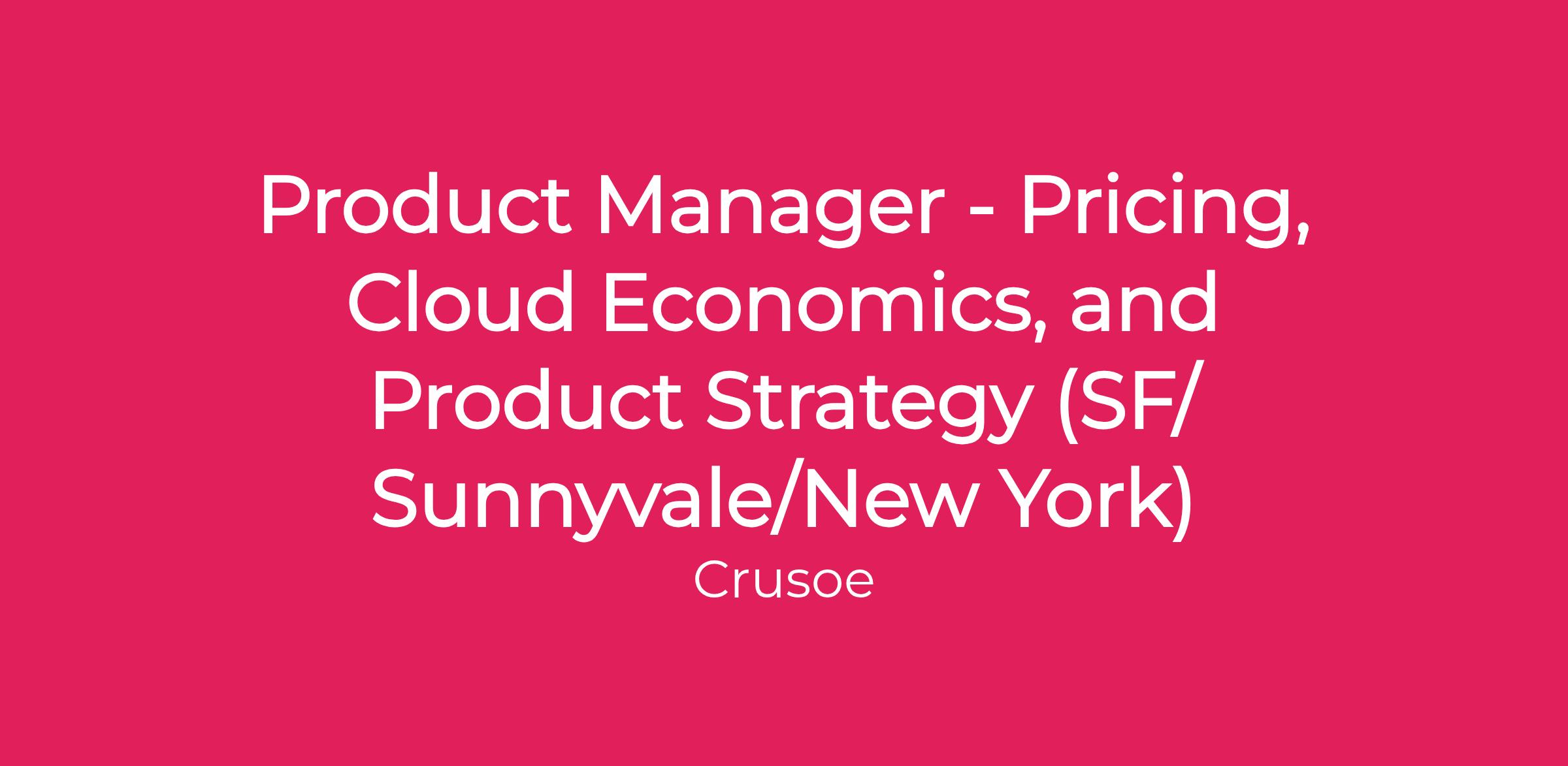 As a Product Manager - Pricing, Cloud Economics, and Product Strategy, you will be at the intersection of product, finance, and go-to-market strategy for Crusoe Cloud. You'll own the pricing models, economic modeling, and strategic product decisions that directly impact our competitive position, revenue growth, and customer value delivery.