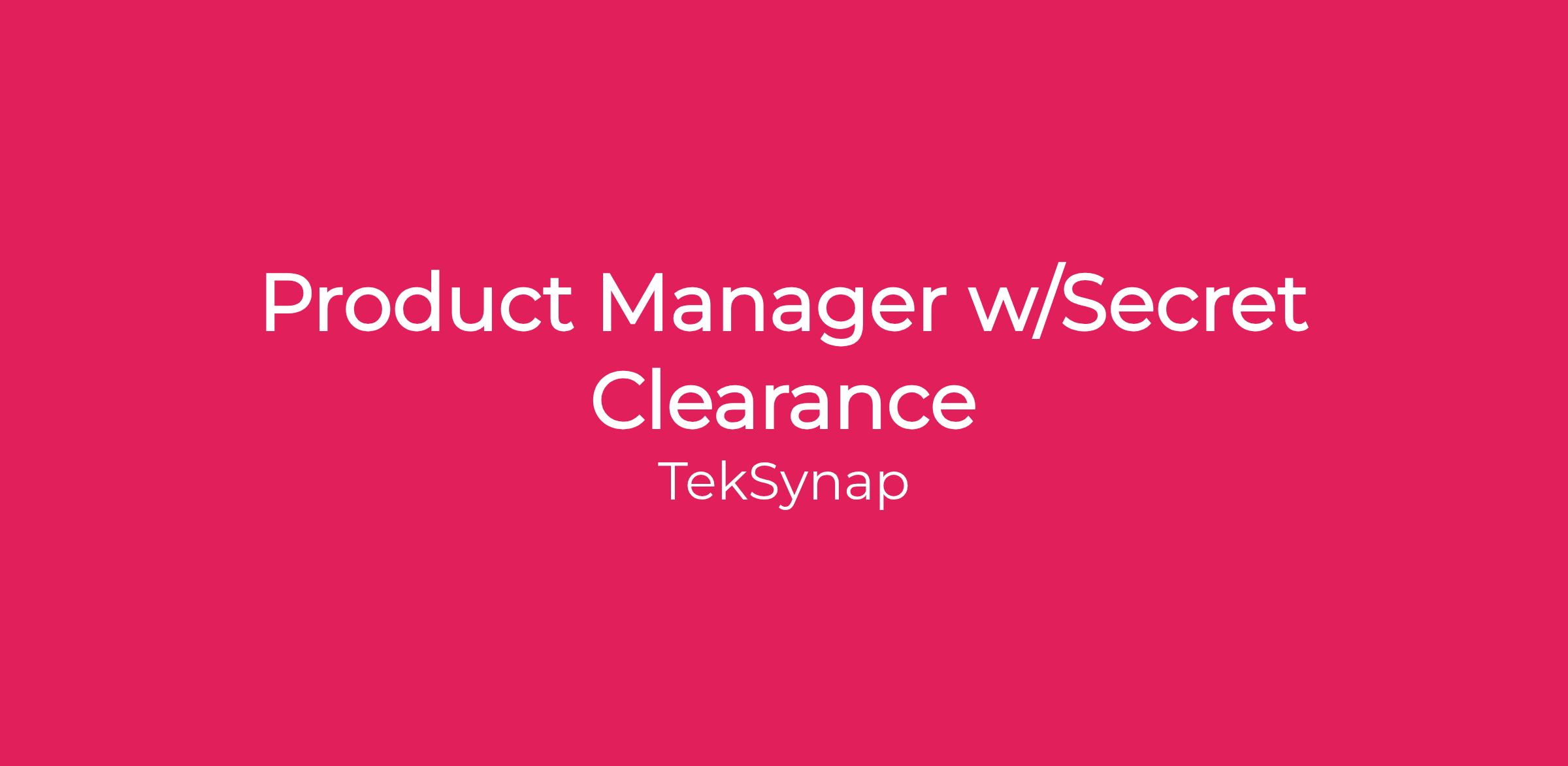Product Manager w/Secret Clearance