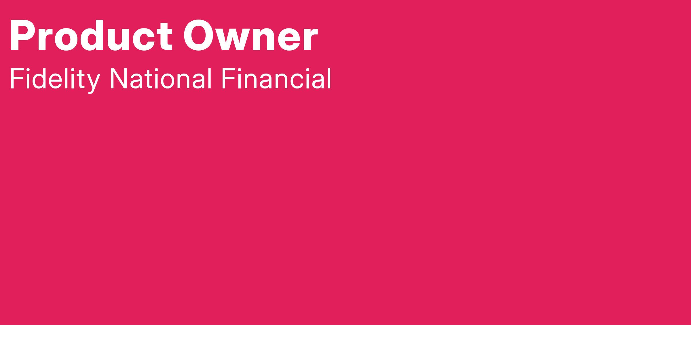 Fidelity National Financial (FNF) is seeking a Product Owner for our Agency Solutions Team. The primary responsibility of the Product Owner (PO) is to develop requirements into stories and prioritize the team backlog to streamline the execution of product/project priorities. The PO has a significant role in quality and is the only team member empowered to accept stories as done. The role has significant relationships and responsibilities outside the scrum team, including working with product management teams on product roadmaps and coordinating with development to maintain the technical integrity of the teamβs areas of ownership.