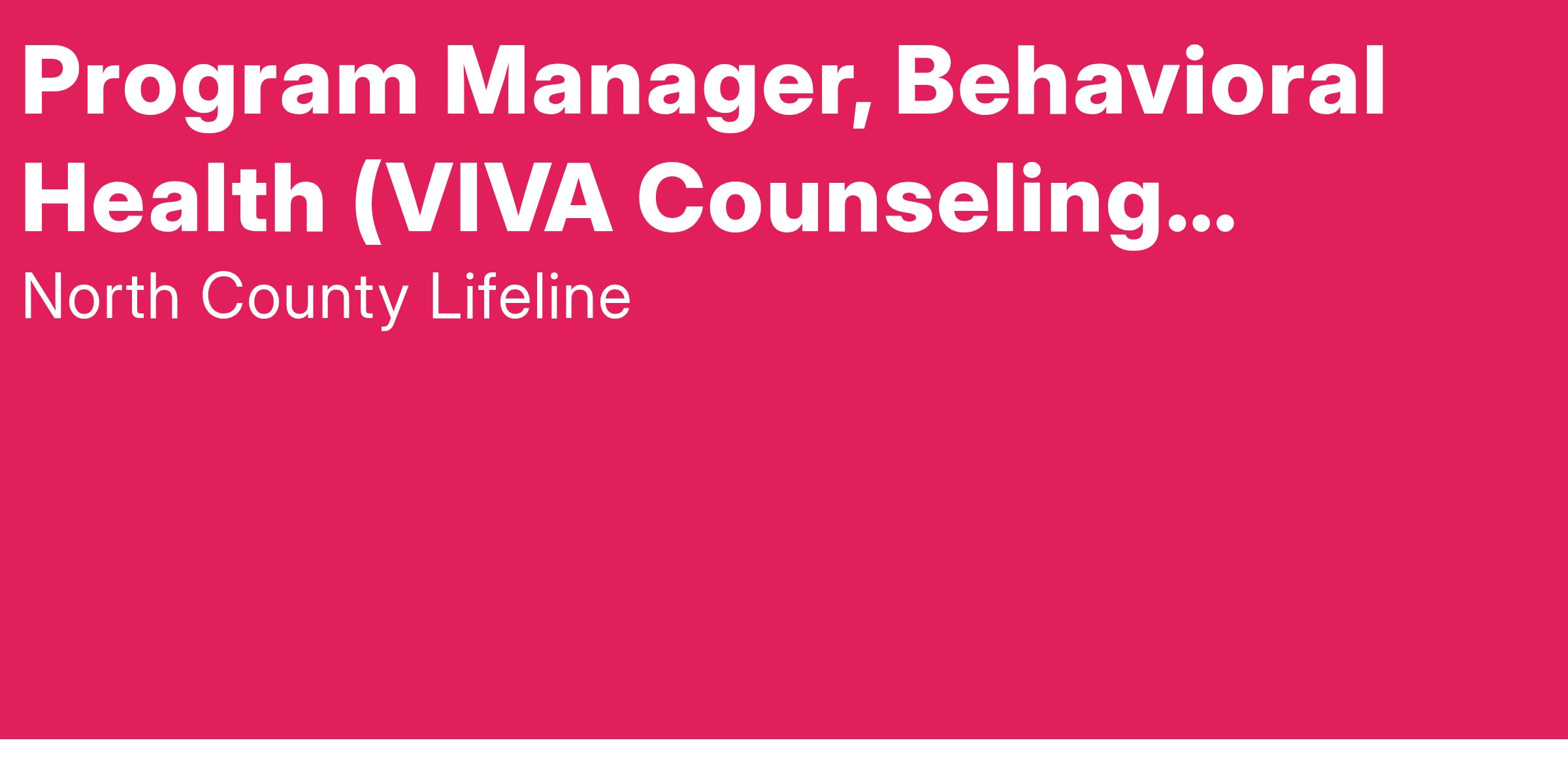 The Program Manager, VIVA Counseling Program is a pivotal leadership role responsible for the strategic, clinical, and operational oversight of one of Lifeline's core outpatient mental health programs serving North County youth.
