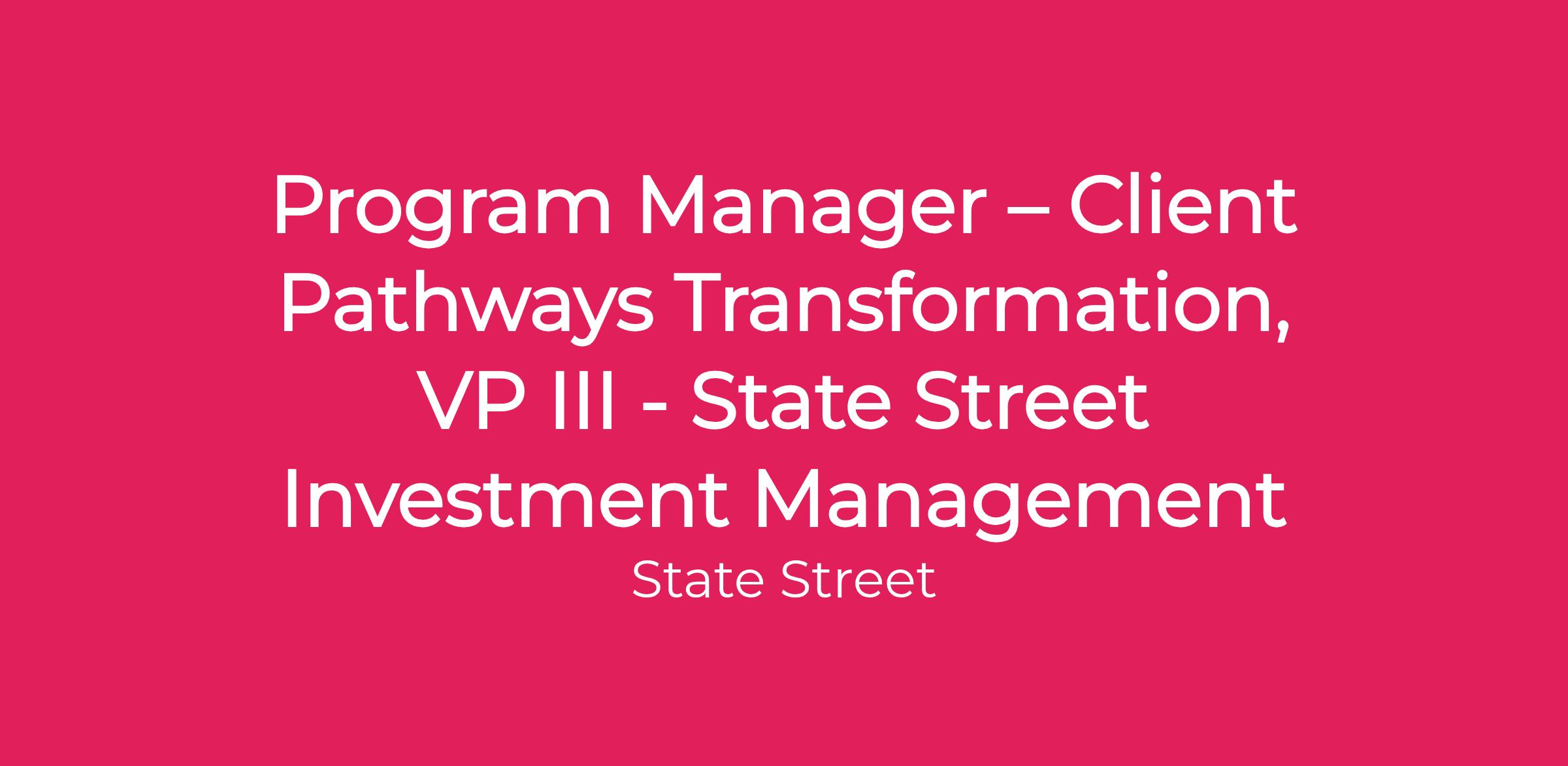 We are seeking a Vice President, Program Manager to play a central role in driving this complex program forward. Reporting to the SVP leading the initiative, this individual will help coordinate execution, engage with business and technology partners, and ensure outcomes are delivered in line with IMβs strategic objectives. The VP will act as a key connector across internal teams and State Street affiliates (Global Delivery, Global Technology Services, and Client Pathways), ensuring transparency, alignment, and accountability across all phases of the program.