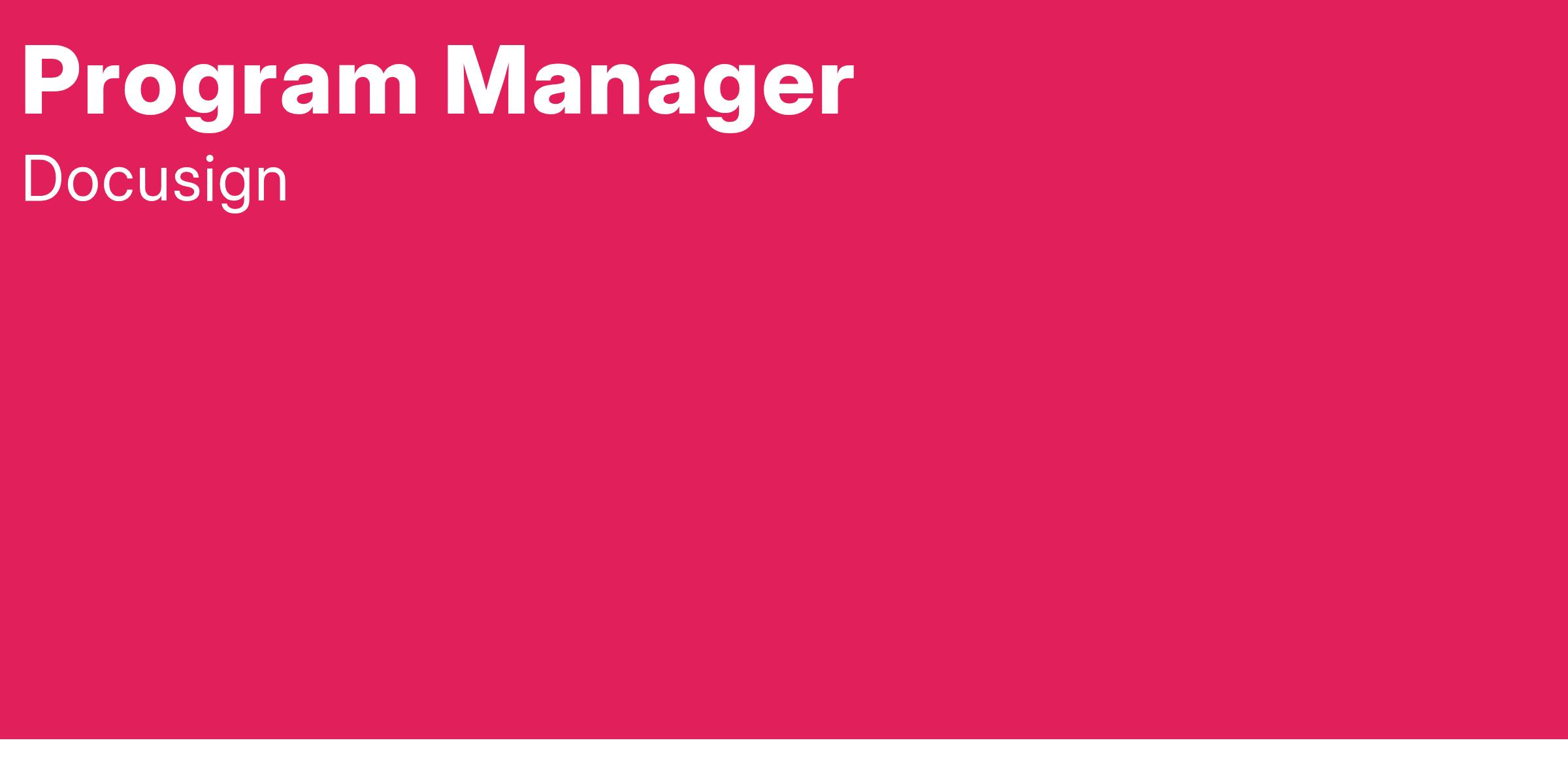 Docusign is looking for a Program Manager to drive and innovate on key initiatives for our core B2I products. In this role you will lead and motivate our teams by introducing efficient processes, driving innovative and measurable solutions to maximize efficiency for team members, and working in unison with the product development teams to create the best experiences for our customers. This role will be responsible for managing programsβ scope through all phases of the life cycle.
