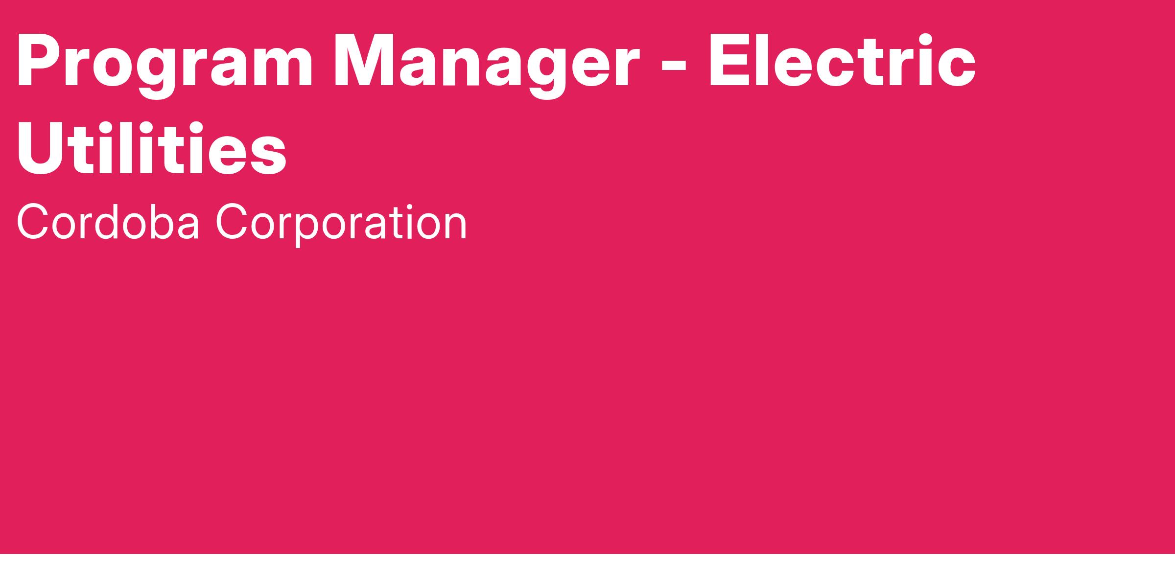 Cordoba Corporation is a leading engineering and design firm, and we are seeking a Program Manager join our Electric sector. The Program Manager will oversee and lead electric distribution projects to ensure sure the safety and reliability of power delivery. This role involves developing strategic plans, managing budgets, and overseeing both internal and external resources. The Program Manager also handles risk management, project scope changes, and maintains effective communication with stakeholders to ensure successful project delivery. The ideal candidate will have in-depth experience leading electric distribution and utility capital projects. This work is critical in protecting customers and enhancing the safety of electric systems against wildfire risks and maintaining reliable power delivery.