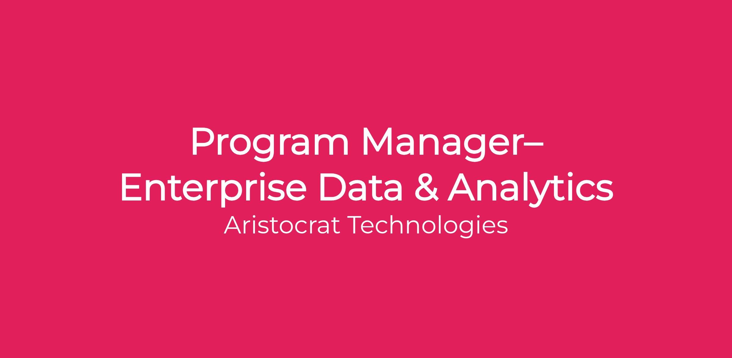 Join our Enterprise Data & Analytics team as a Program Manager and help shape the future of data-driven decision-making at Aristocrat. This is an exceptional opportunity to work with an extraordinary team and align Aristocratβs objectives across our centre of excellence!