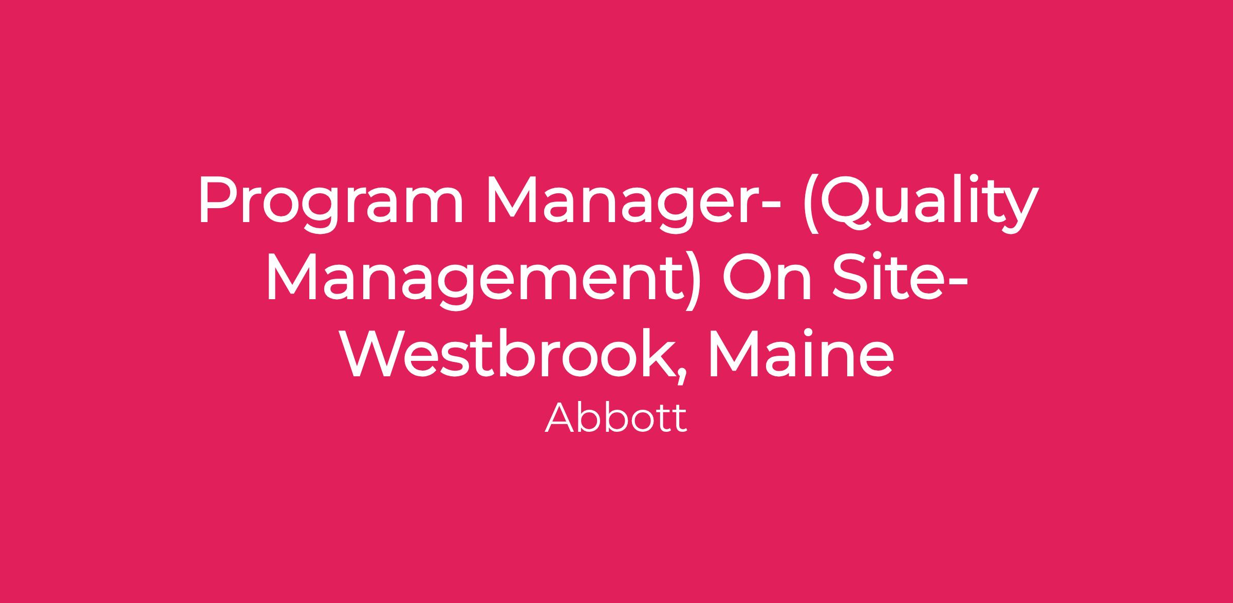 The position of Program Manager is within our Infectious Diseases business unit located On Site in Westbrook, Maine. Weβre empowering smarter medical and economic decision-making to help transform the way people manage their health at all stages of life. Every day, more than 10 million tests are run on Abbottβs diagnostics instruments, providing lab results for millions of people.