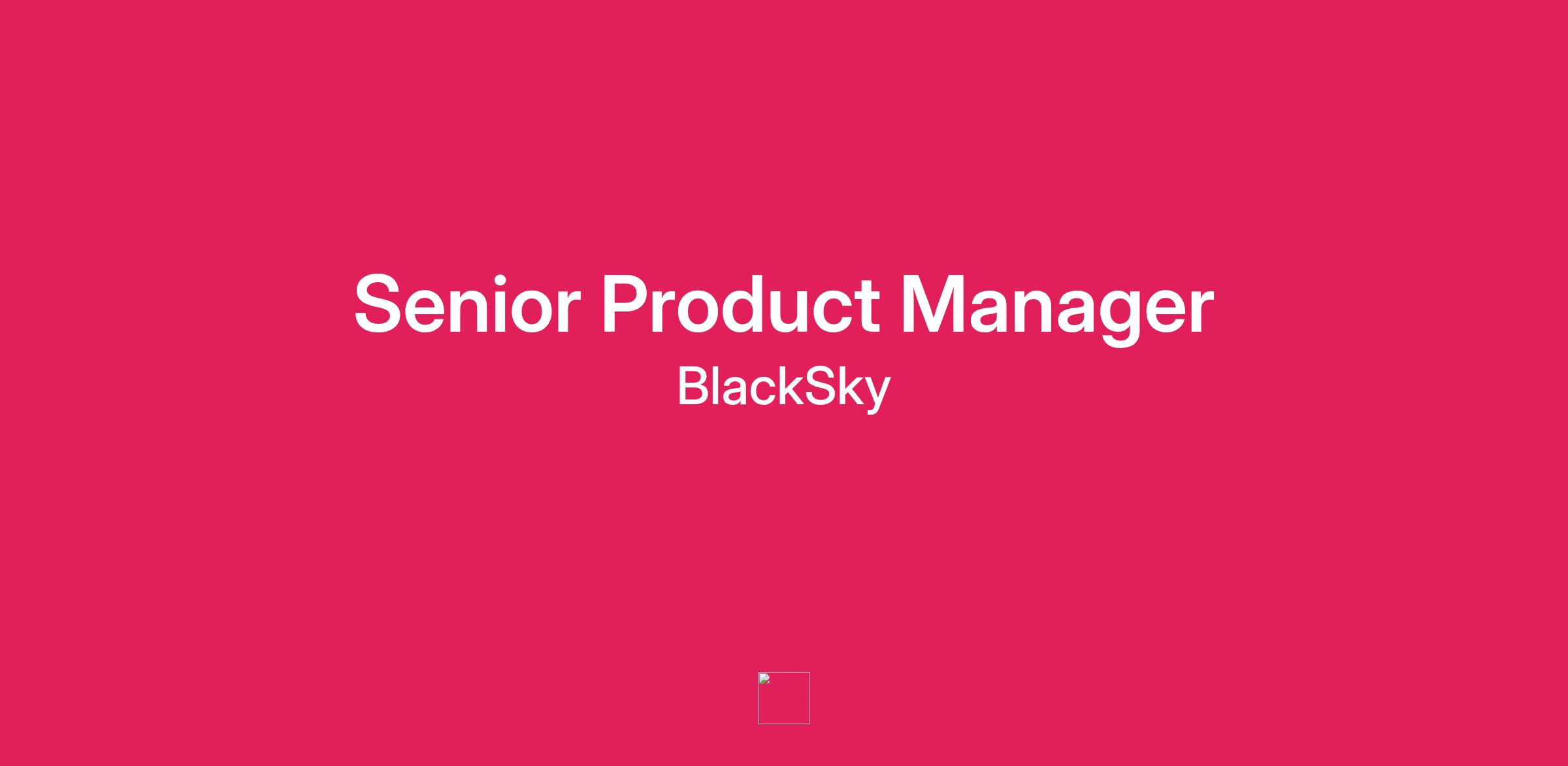 The Senior Product Manager for Analytics will drive sustainable business growth by crafting and executing BlackSkyβs analytics product strategy through product specification, strategic roadmap management, product KPI formulation and tracking, product marketing, and direct support to the global Sales and BD organization. This role reports directly to the Vice President of Product Management and while we prefer candidates located near our Herndon, VA or Seattle, WA offices, we are open to remote candidates in certain states.