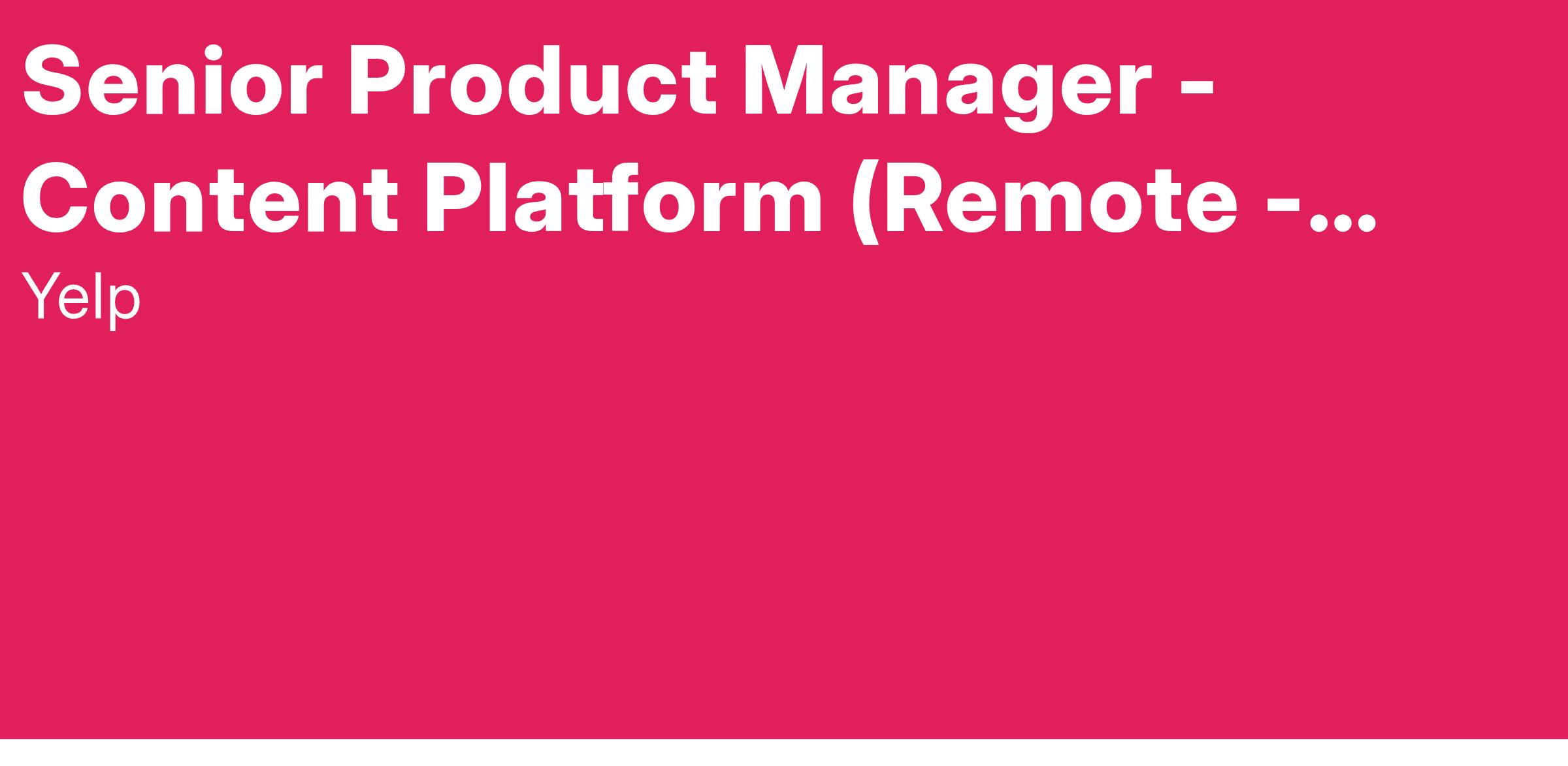 As a Product Manager for the Content Platform team, youβll be responsible for identifying, collecting, and making available rich content from our vast and vibrant community of business owners, partners, and millions of consumer contributors. Youβll help us determine what new ideas and trends Yelp needs to showcase, how to obtain that data at high coverage from new channels, how to organize it for high quality and availability, and how to curate and display it in the consumer experience.