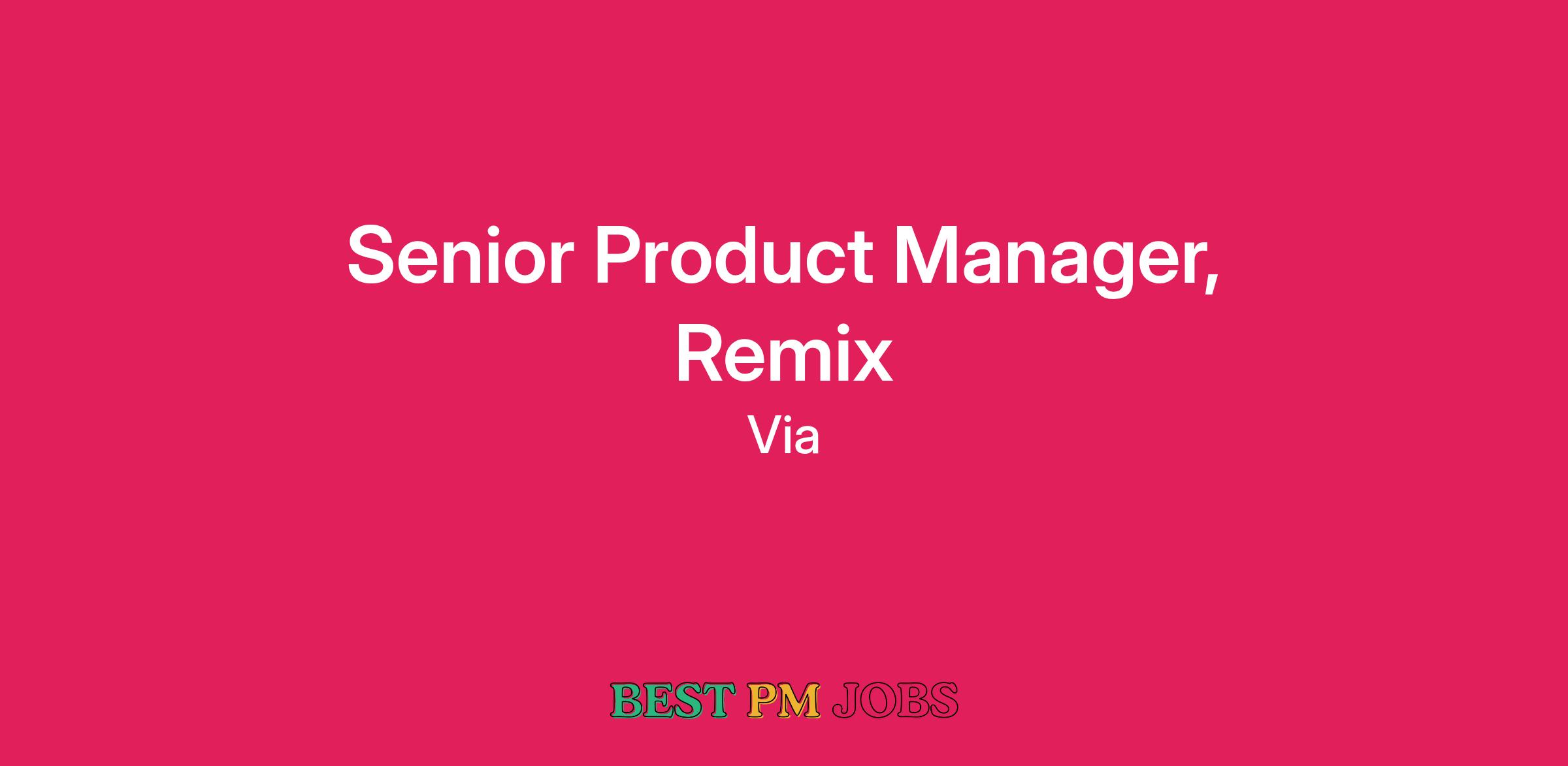 Weβre looking for a Senior Product Manager to lead a product that helps public transit planners improve their communities. Youβll join the Remix team to work on our market leading transit planning software, already loved by users in hundreds of cities around the globe. The Remix product team takes pride in our beautiful map-based product, obsesses over delivering intuitive features, and succeeds when planners and city officials use Remix to have a greater impact for the public good.