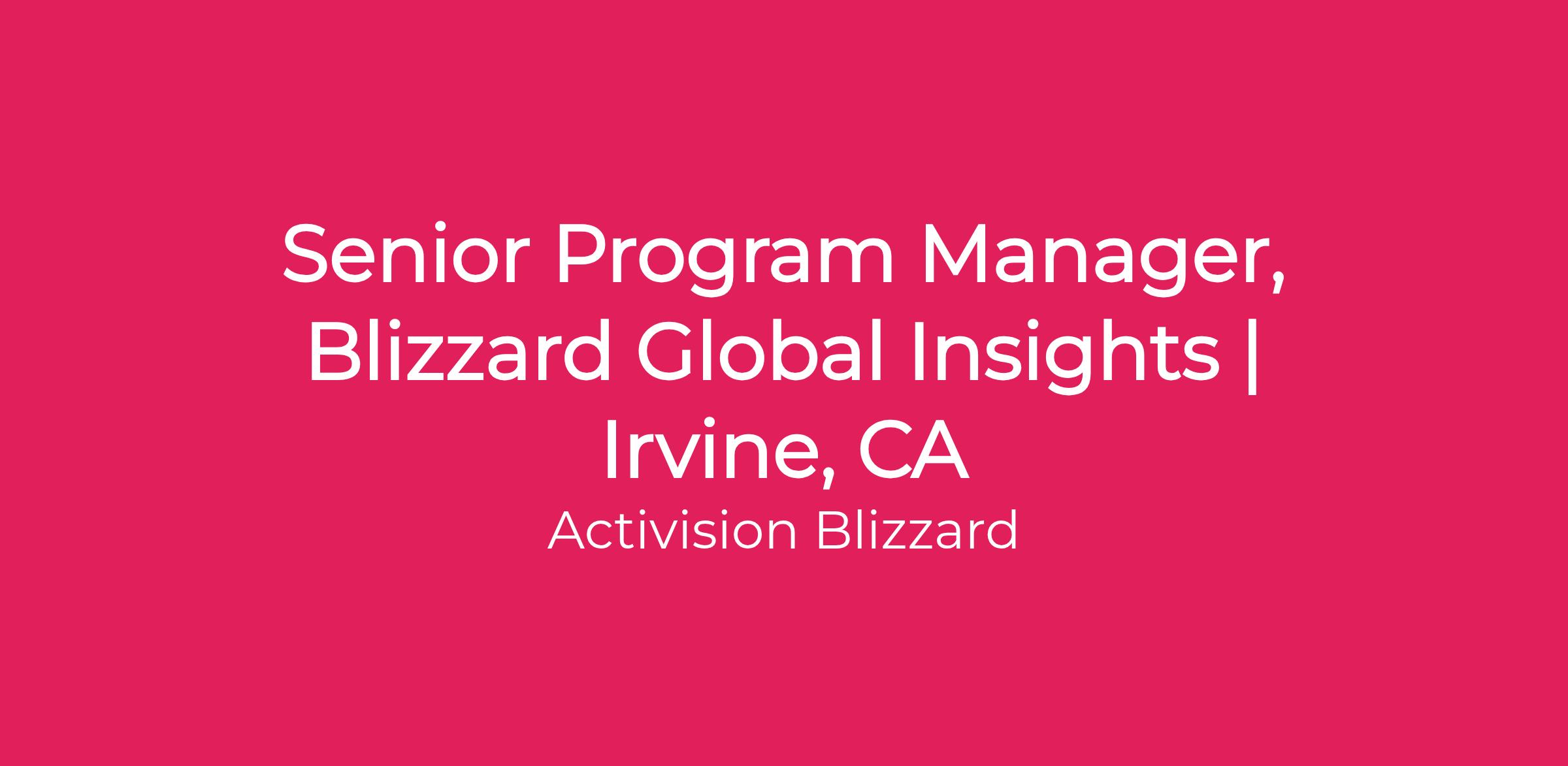 We are looking for a driven Senior Program Manager: an individual who possesses a wide knowledge of program, product, and project management styles and processes. You should understand analytical and infrastructure technologies, have superb communication and relationship building skills, and be able to adapt to shifting priorities. Our unique blend of challenges, opportunities, environments, and people all help make Blizzard a studio worthy of your career.