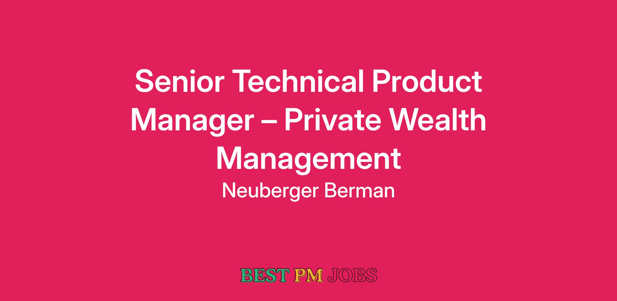 We are looking for a self-directed, proactive, and results-oriented experienced Technical Product Manager with strong Private Wealth Management experience with a focus on Advisor and Client solutions.Β This role requires exceptional communication, project management, problem-solving, and leadership skills.Β It requires the ability to work effectively with individuals at all levels of the organization, both within Technology and the Private Wealth business. This individual would support Neuberger Bermanβs multi-year strategic program focused on delivering technology products and a platform supporting Wealth Advisors and their clients.Β Product solutions will include both in-house development and vendor application integrations. You will be responsible for user engagement, current/future state process and solutions documentation, Technology deliverables, and planning/tracking implementations.