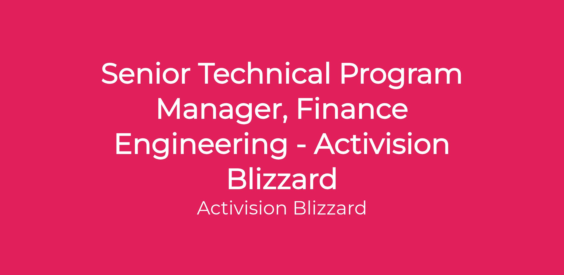 Senior Technical Program Manager, Finance Engineering - Activision Blizzard
