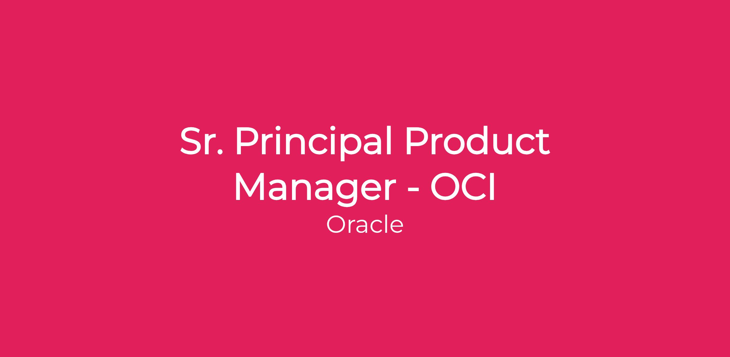 DescriptionSr. Principal Product Manager – Oracle Cloud Infrastructure (OCI)
