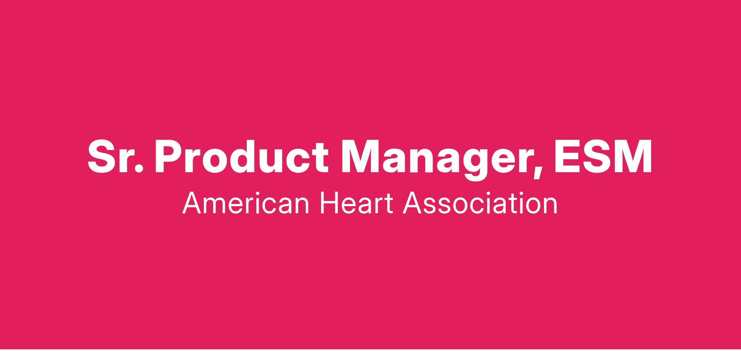 The Sr. Product Manager for the Enterprise Service Management (ESM, ServiceNow) platform will be part of the American Heart Association Business Technology (BT) group and work with various collaborators, and individual contributors across multiple business units, and vendors. This role will be responsible for providing strategic direction and acting as an evangelist for the ESM platform.