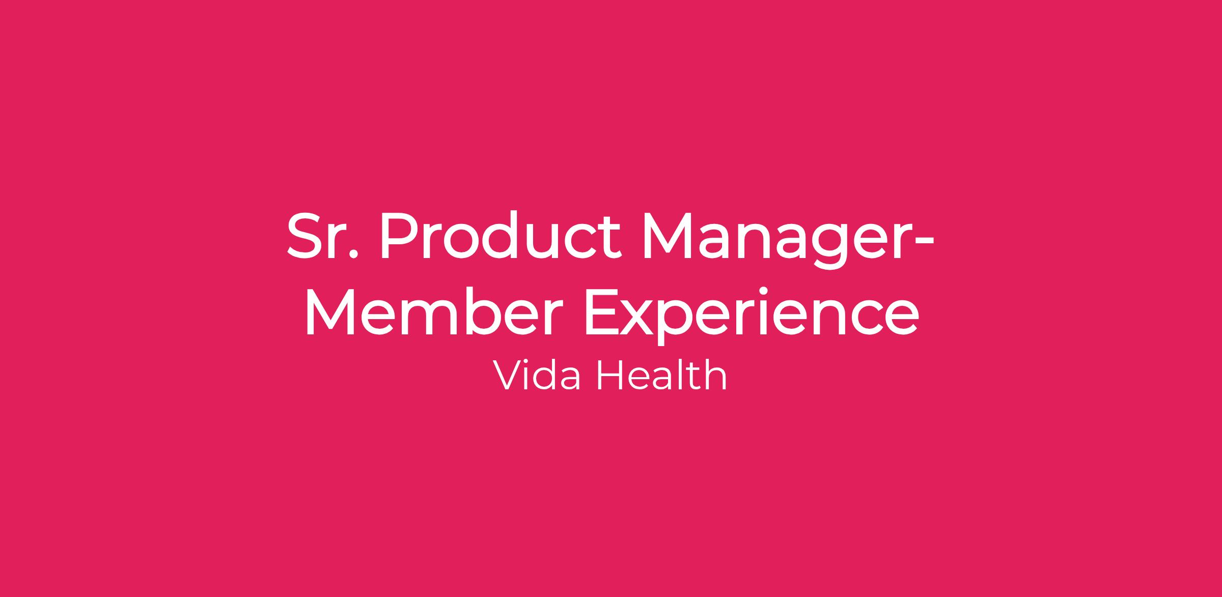 Vida Health is seeking a Senior Product Manager, Member Experience to own the day-to-day execution and continuous improvement of the member-facing product. You will drive engagement, retention and health outcomes for hundreds of thousands of members across Vidaβs clinical and behavioral programs.