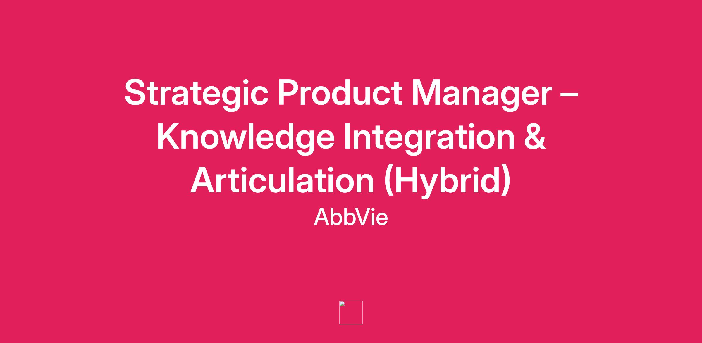 As a Strategic Product Manager, you drive the success of knowledge integration solutions by bridging business goals with technical delivery.